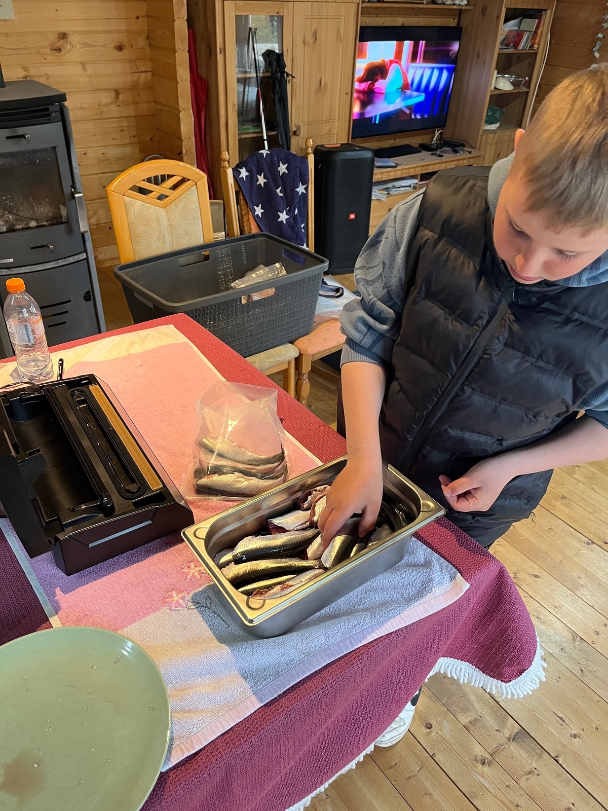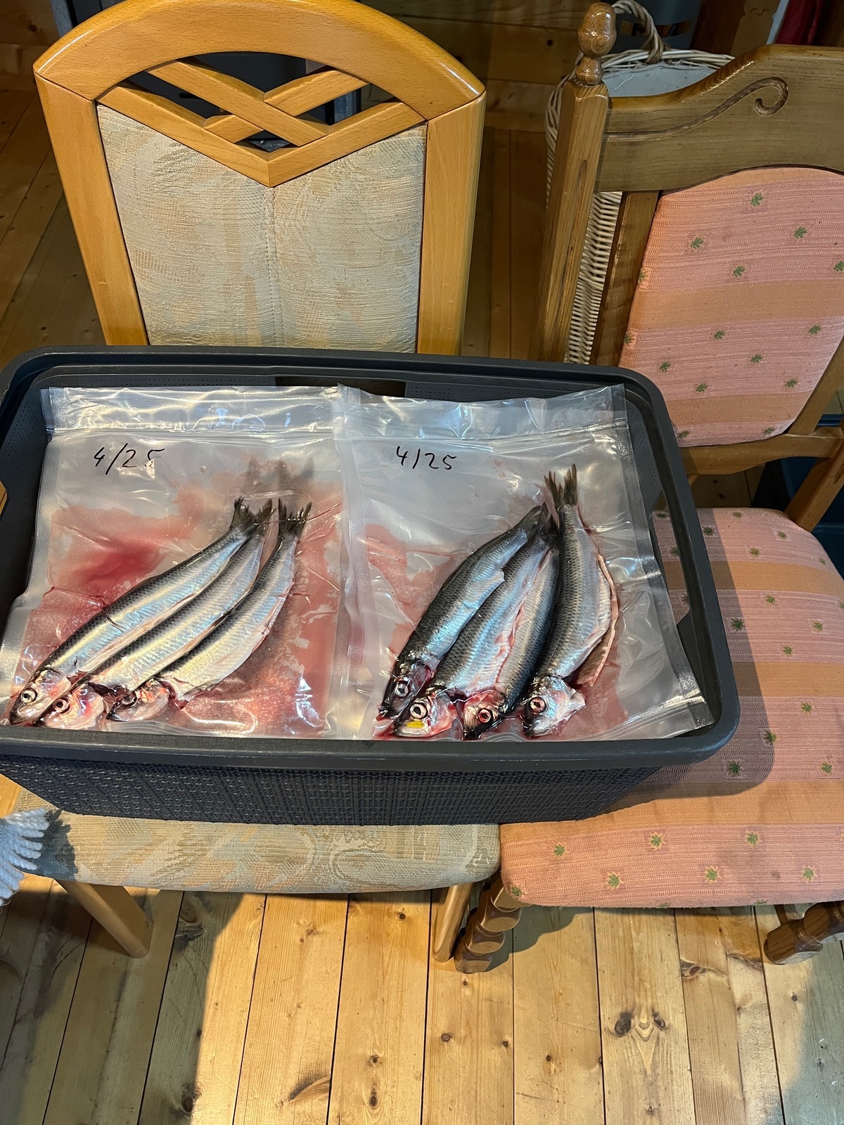 So wir sind gestern wieder Zuhause angekommen und da war erstmal Silberlinge verarbeiten angesagt wir haben 370 Heringe mitgenommen, gefangen haben wir bei weiten mehr, die kleine sind alle wieder zurück im Sund