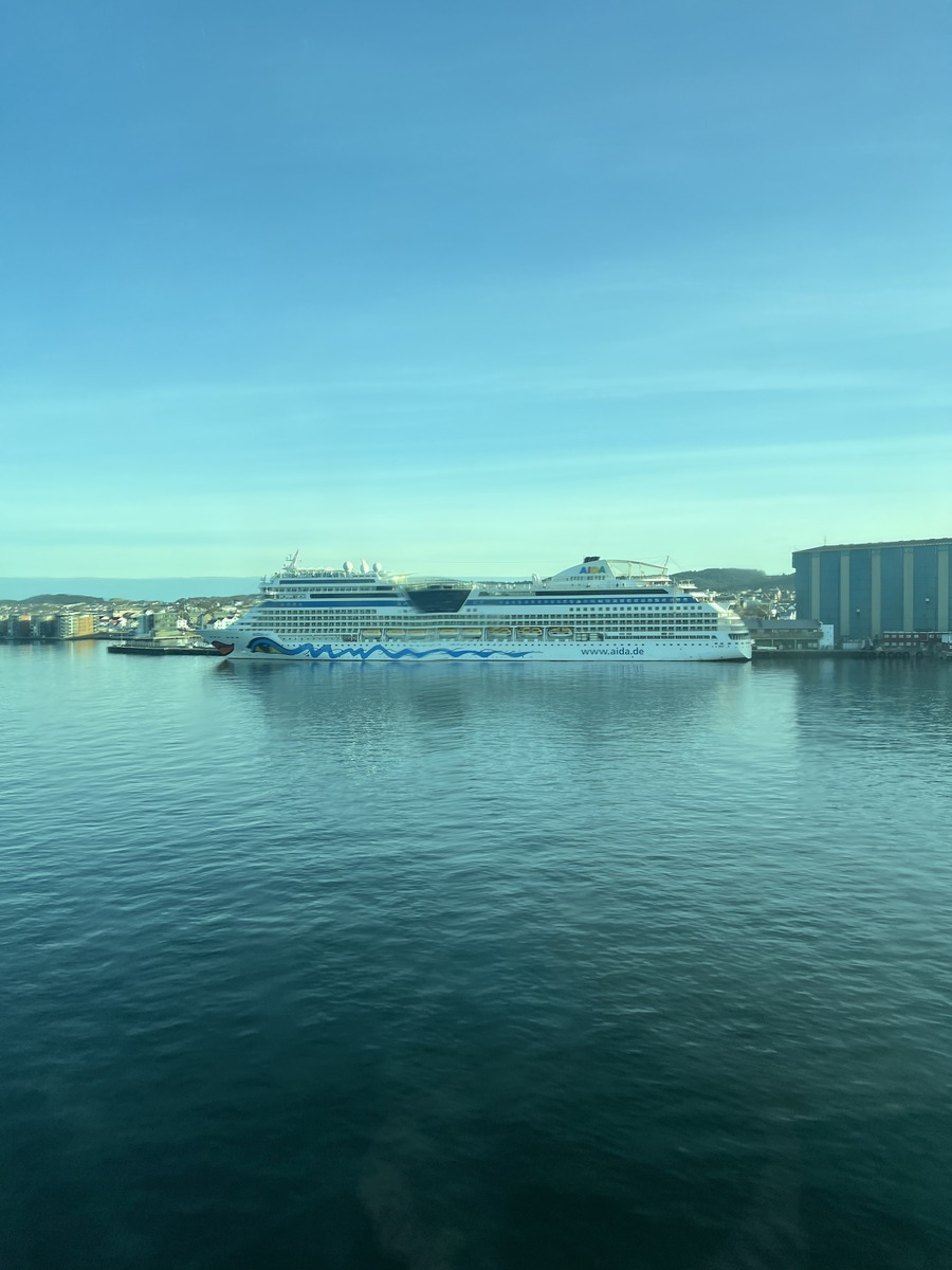 Die Überfahrt war sehr ruhig. Für den einen oder anderen bei uns ein Segen, dass die Wellen so gut wie kaum zu spüren waren ^^ Pünktlich um 13 Uhr kamen wir am nächsten Tag in Bergen an. Auf dem Weg dorthin sahen wir Vormittags noch ein U-Boot und auch eine Aida passierten wir mit der Fjordline. Runter vom Schiff, kurz durch den Zoll und weiter ging die Fahrt nach Selbjörn. Dort angekommen riefen wir kurz unseren Vermieter an, dass wir da sind. Nach ein paar Minuten war er dann da und wir konnten das schöne Ferienhaus beziehen.