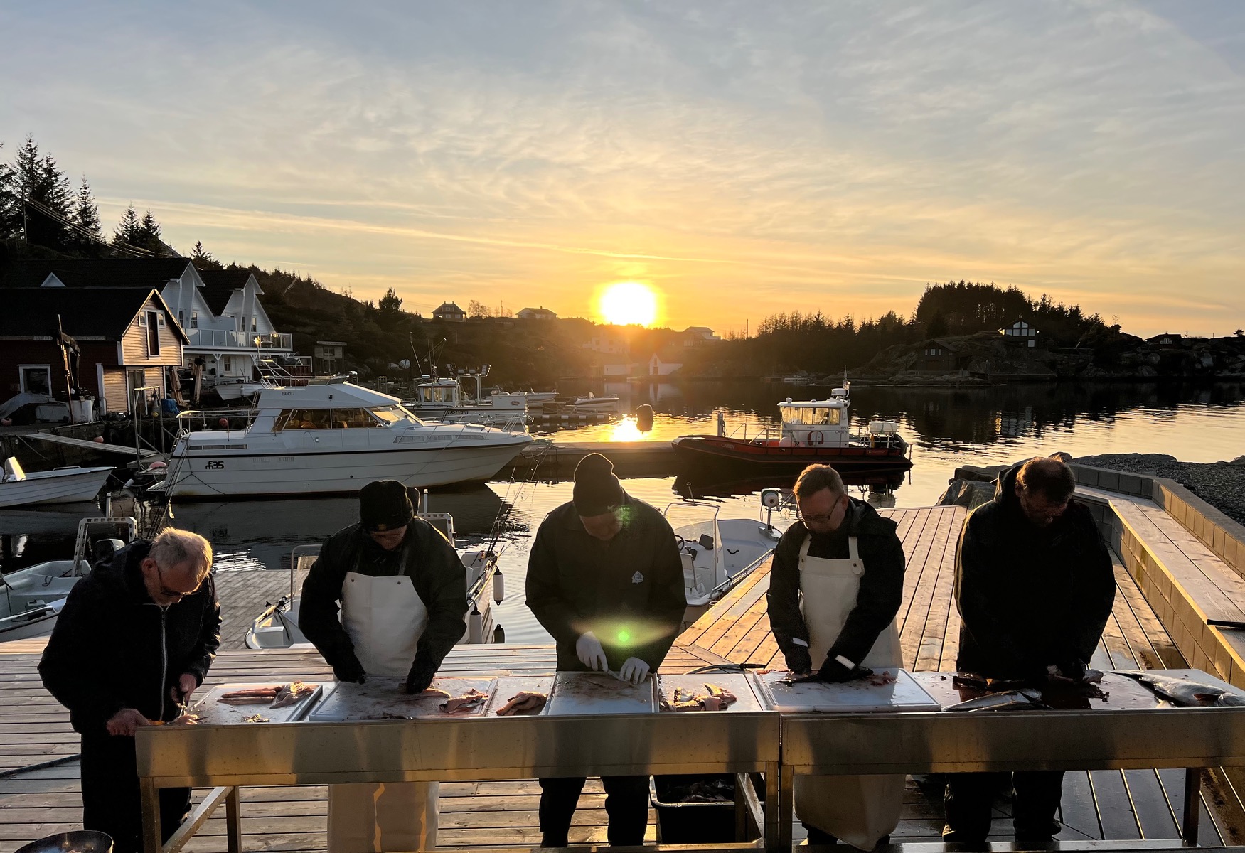 Nach einer Einweisung in die Boote hat ein Teil von uns noch einen ersten Versuch gestartet und sind mit einem Boot für 2 Stunden etwas rausgefahren. In den letzten Jahren war die erste Ausfahrt meist nicht mit Fisch belohnt worden, doch dieses Mal kamen die Jungs direkt mit ein paar Seelachsen wieder, sodass wir schon ein paar Tüten Fisch zusammenbekommen haben.
