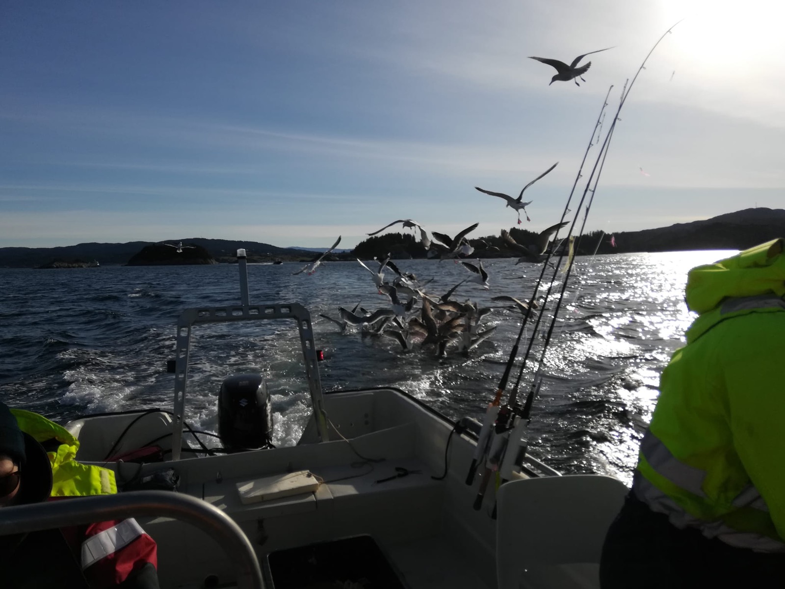 Heute war der Wettergott wieder auf unserer Seite und bei bestem Wetter mit viel Sonne und wenig Wind fuhren wir Richung Mokstrafjorden und noch etwas weiter nördlich hinaus, wo wir mehrere Unterwasserberge beangelten. Dabei kamen immer wieder ein paar Seelachse ins Boot und mit Naturköder waren wir zwischendurch auch immer Mal wieder erfolgreich.