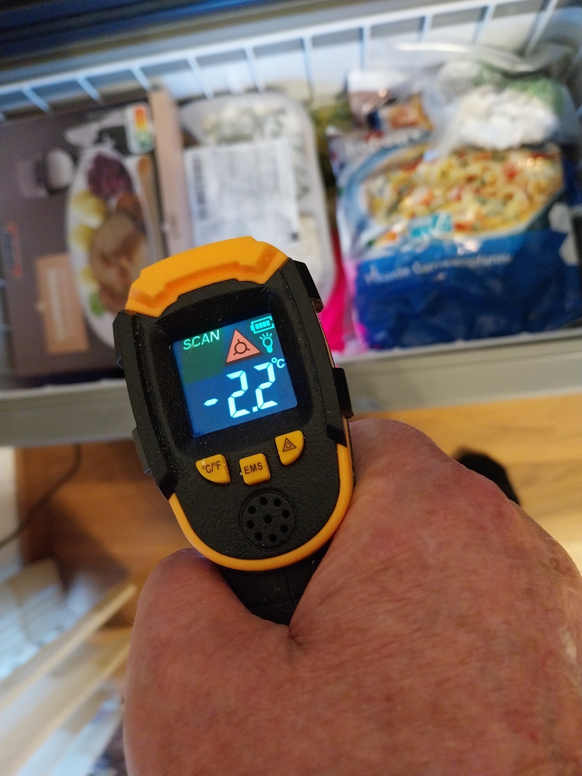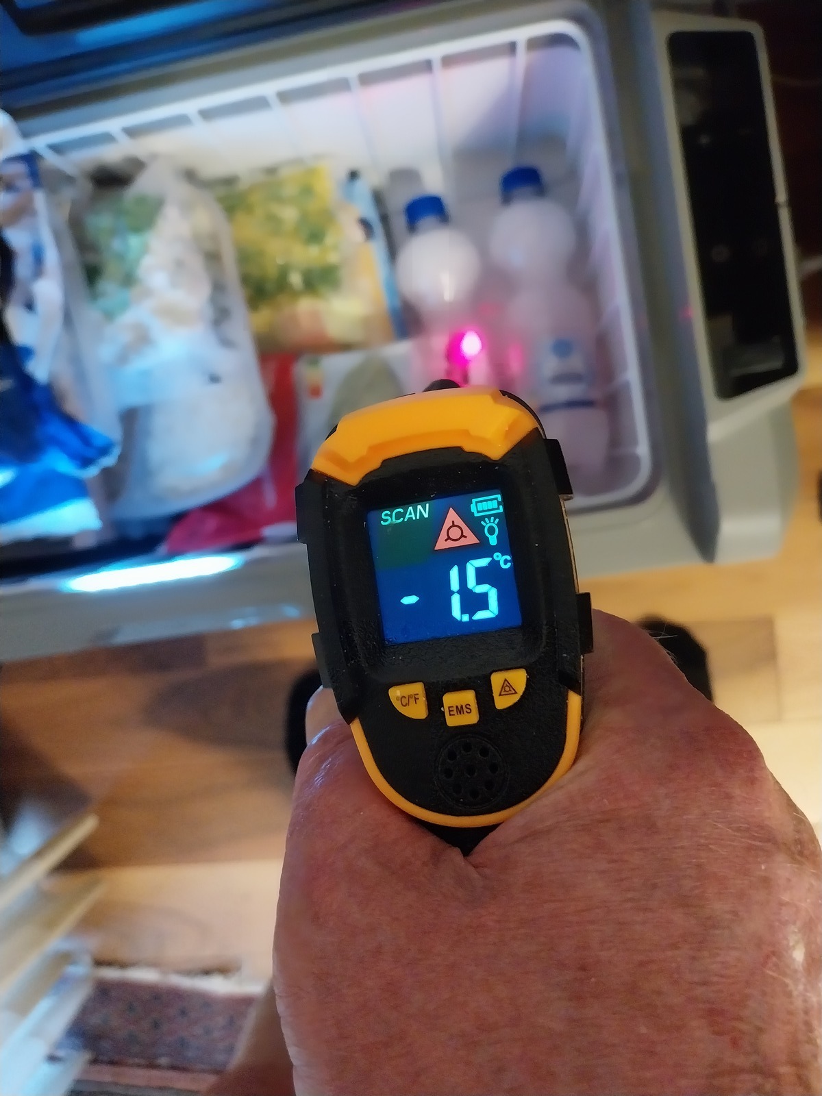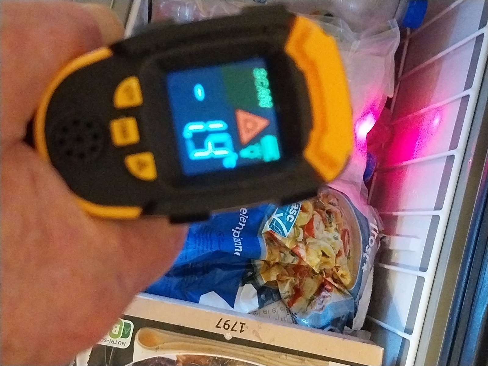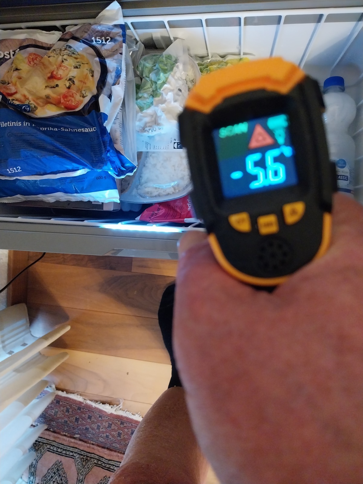 Denkste, alles im grünen Bereich. Nichts angetaut, alles noch knackig gefroren. Die Temperatur im Innern schwankte von - 2 Grad - - 6 Grad.