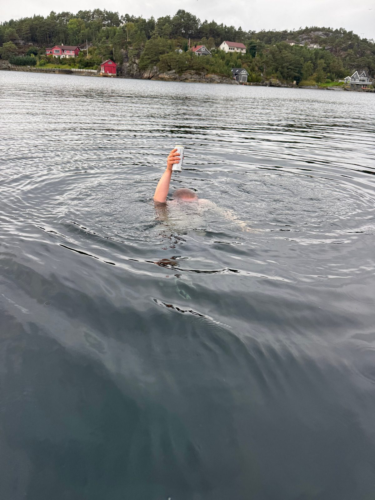 Als wir wieder alle versammelt waren, merkte man deutlich, wie dann doch die Luft aus allen raus war. Das frühe Aufstehen, die tolle Luft und körperliche Anstengung beim Angeln hatte jeden erschöpft. Doch das hielt HaTa und mich nicht ab, auch an dem letzten Tag in den Fjord zu gehen. Damit hatten wir unser Vorhaben, an jedem Tag ins Wasser zu gehen, erfüllt.