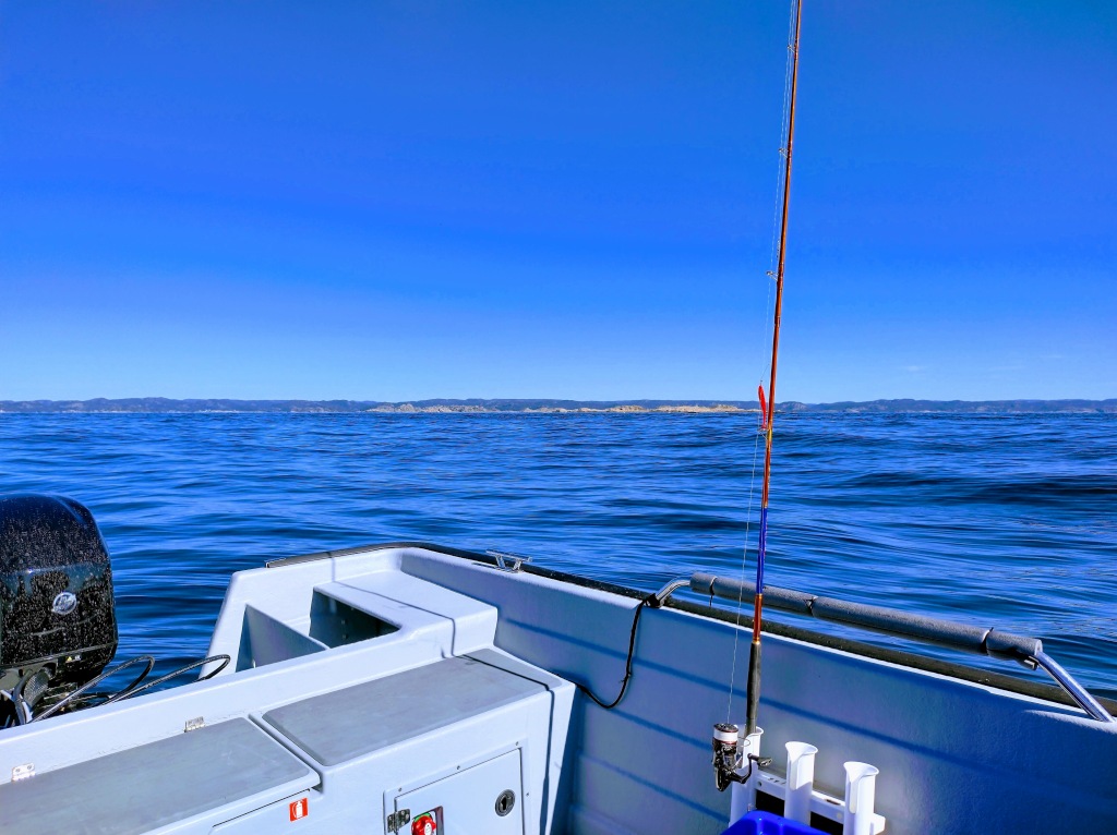 Da wir diese Erfahrung schon vor 6 Wochen und auch im August 2024 gemacht hatten, hatten wir uns für diesen Trip etwas überlegt. Bis jetzt hatten wir zwar auch mit Naturköder geangelt und auch durchaus Erfolg gehabt, mit steigendem Alter (und grassierender Faulheit) hatten wir aber immer weniger Lust auf die Kurbelei. Wenn man den 5. Wittling aus 90m Tiefe hochgezogen hat, fällt das weitermachen immer schwerer.