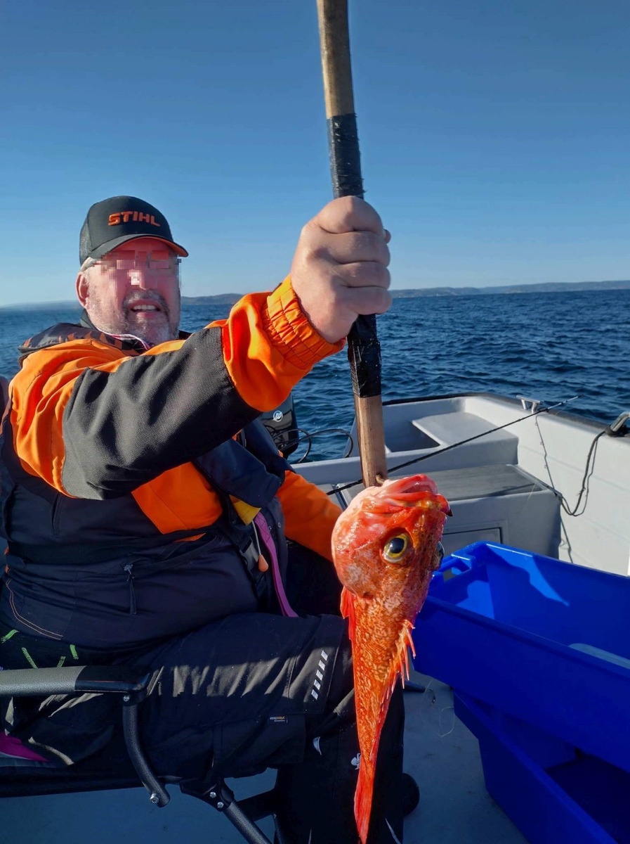 Der Camp-Manager erzählte uns dann, da wir ja nun auch richtig tief angeln könnten, sollten wir es doch mal auf Blaumäulchen versuchen. Er nannte uns einen Spot bei 175m Tiefe. Der war so weit draußen, das wir fast die dänische Fisketegn gebraucht hätten... Egal, als das Wetter es zuließ, sind wir hin. Und Überraschung, es hat geklappt!