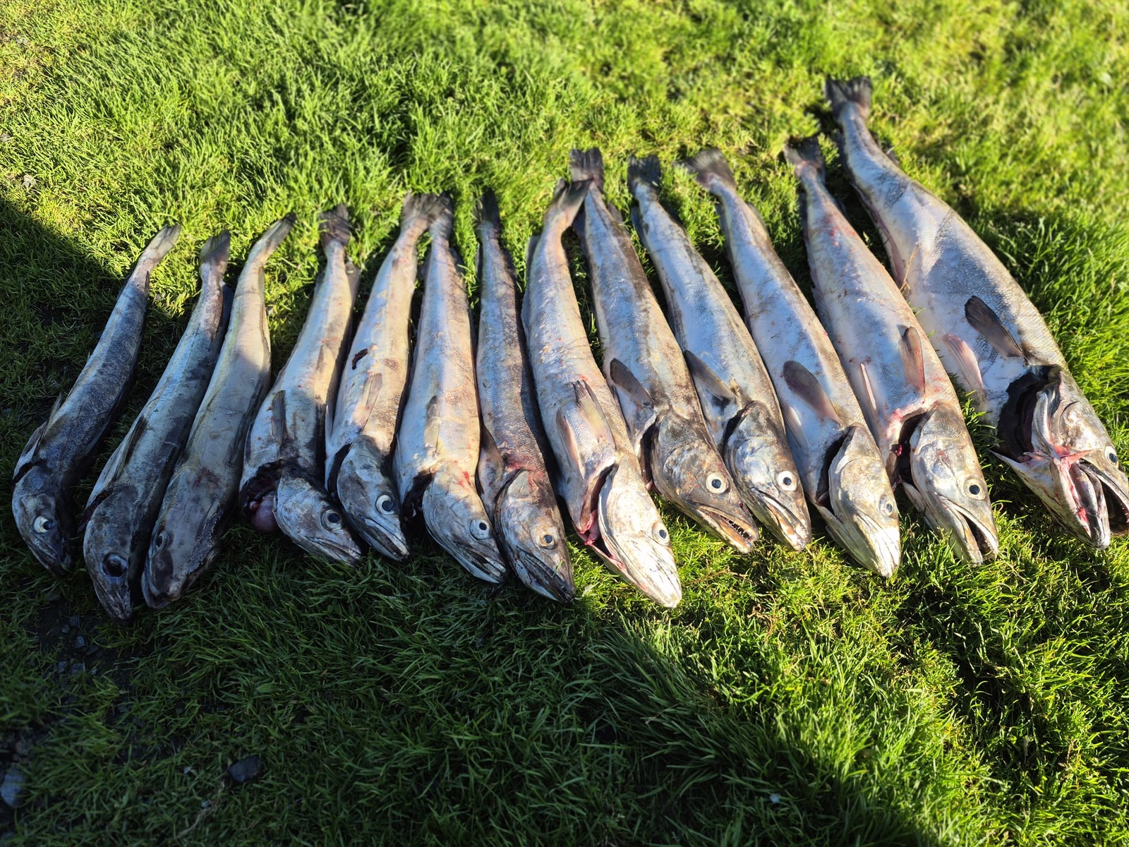 Der Seehecht stand heute auf unserer Wunschliste. Nach mehreren Driften hat es denn auch geklappt, zumindest bei Ingo, Rolf und Sandra. Ich habe mich dann auf Knurrhähne und eine fette Makrele beschränkt .
