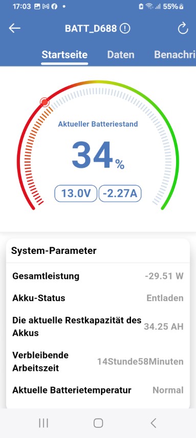 Lange Rede, kurzer Sinn, ich hab mir was vernünftiges angeschafft. Es ist eine Lithium-Eisenoxyd geworden, mit der Bezeichnung Lifepo4 und einer Stärke von 100 AH. Also dreifache Menge an Power gegenüber dem Vorgänger, aber bei gleichem Gewicht und Abmessungen. (11 kg)
