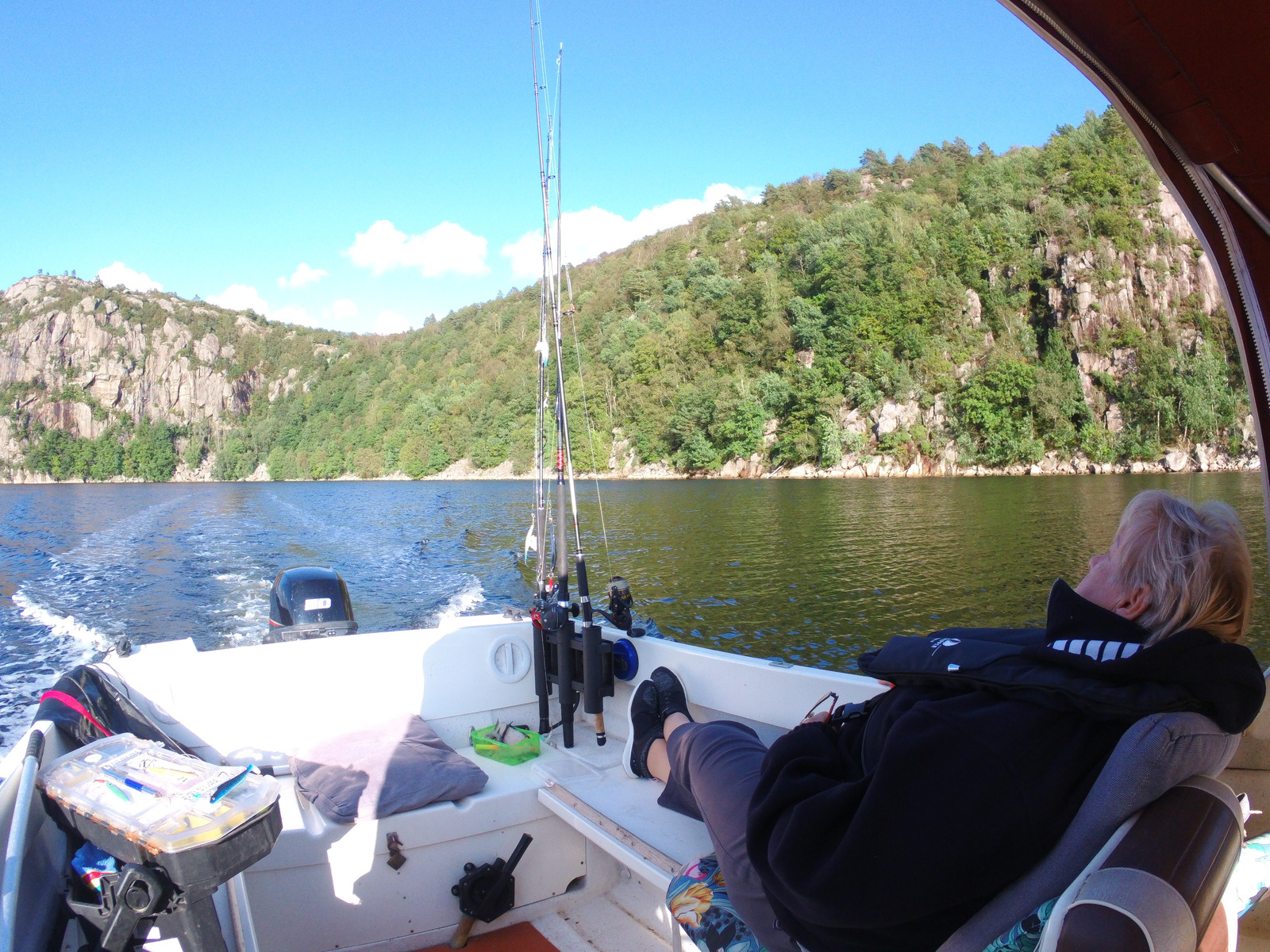 Hallo liebe Angelfreunde, sind gerade wieder in das Bootshaus eingelaufen. Waren heute Nachmittag auf dem Fjord. Die Sonne tat uns gut das Angeln war zäh. Um es gleich vorweg zu nehmen, heute null Fisch. Was ich auch angeboten habe, den Fischen hat es nicht gefallen. Der Wind im Fjord war auch nicht zu verachten, habe deshalb den Driftsack ausgeworfen. Dann war es super. Ich hatte einige Fischreste vom Pollack an die Haken gehängt, aber die mochte auch keiner. So war es ein schöner Sonntagsausflug auf dem Wasser. Vormittags war ich mal am Kanal und bin ins Gespräch mit einem Rüganer gekommen. Er war vom Angeln auch nicht begeistert. Die Platten auch zu klein, aber Makrele und Pollack hatte er gefangen. Heute wäre auch einTag für die Nordsee gewesen, aber Jörg hat sich nicht gemeldet. Ja am Sonntag will auch jeder seine Ruhe haben, verstehe ich auch. Meine Ilona hat schon signalisiert, heute gibt es keinen Fisch, vielleicht Nudeln. Morgen soll es ja laut Wetterbericht den ganzen Tag regnen. Hoffendlich irrt er sich. Mal sehen was wird. Bis dahin verbleiben wir mit vielen Grüßen aus Spangereid, Ilona und Heinz