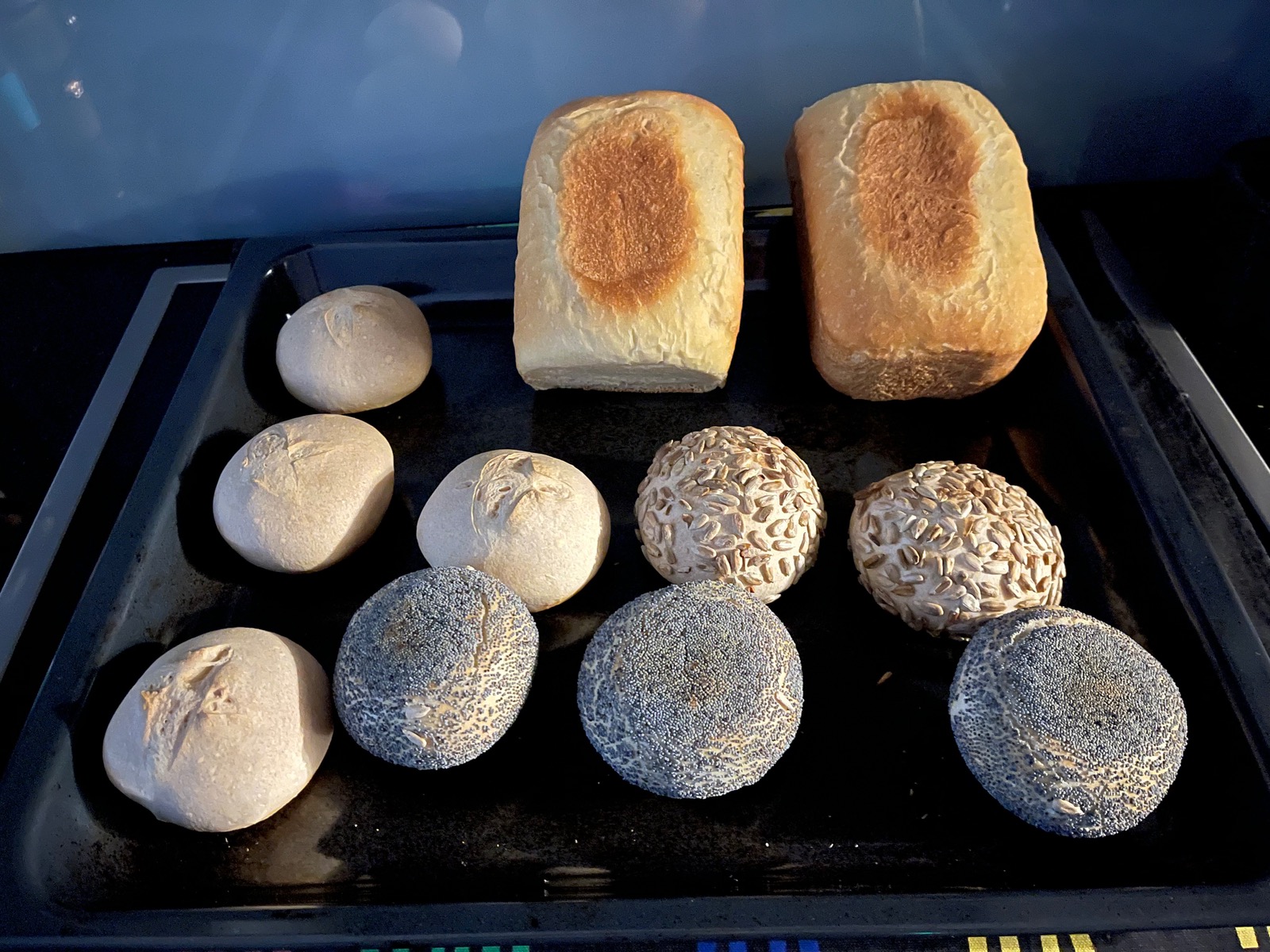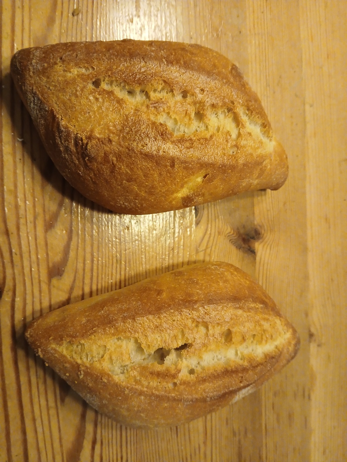 10 Minuten bei 180 Grad und ... siehe Bild ... und du hast ein herrlich knuspriges und wohlschmeckendes Brötchen das mich ein wenig an die in Schleswig-Holstein üblichen «Kieler Brötchen» erinnert.
