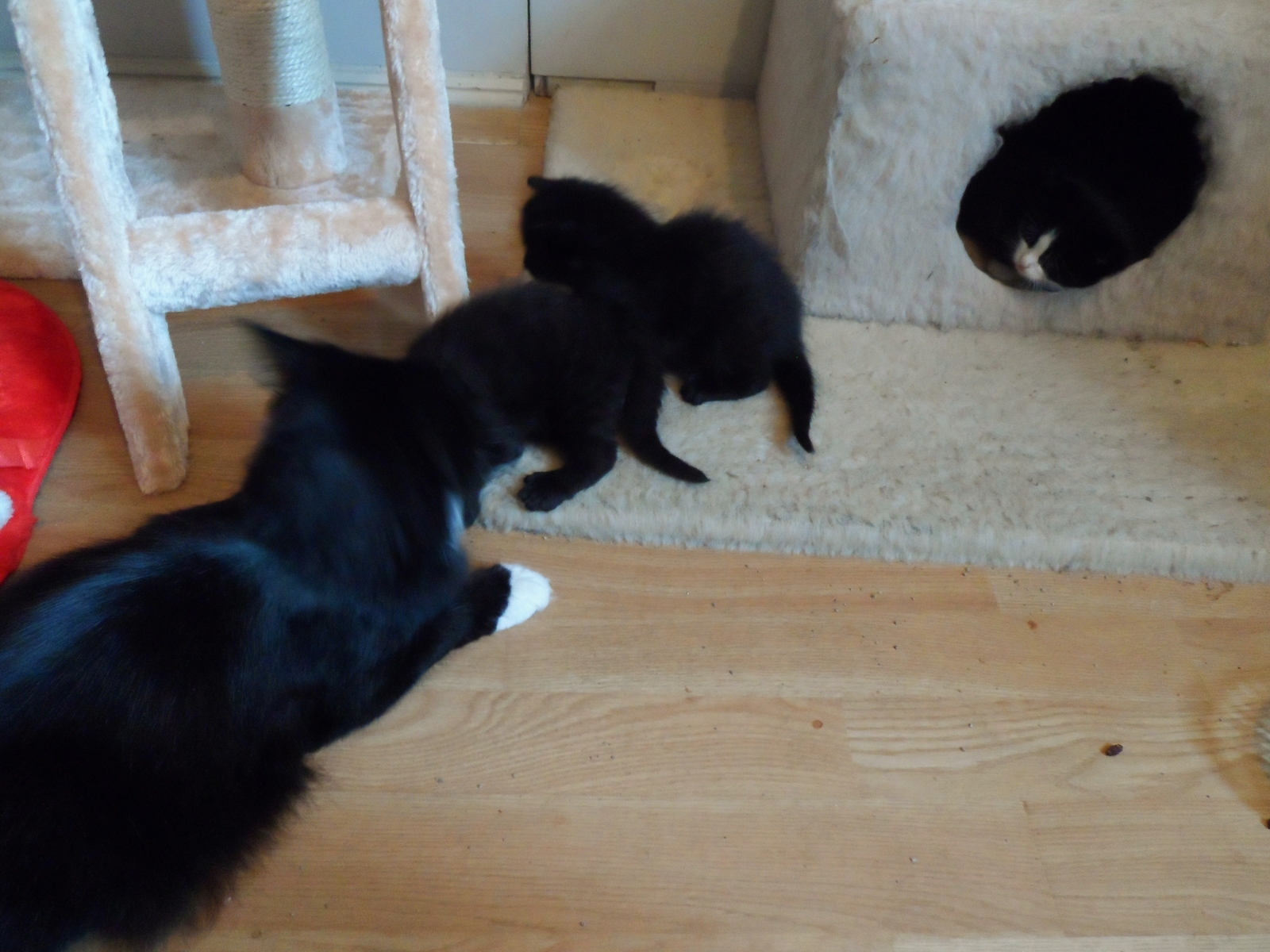 Und auf Foto 2 tobt das junge Katzenleben. Für mich die schönste Zeit wenn die Zwerge anfangen zu spielen und alles aber auch alles unbedingt untersuchen müßen:klatsch: