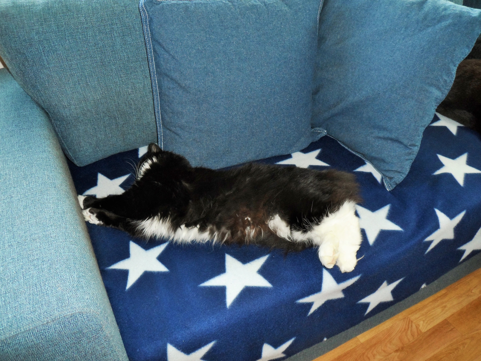 Timmy's neuer Kuschelplatz (aus einer Fleecedecke und einem Bademantel von meiner Schwester genäht)
