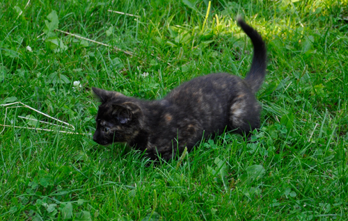 Eines der Maikätzchen. Der kleine Kater ist sehr entdeckungsfreudig, so wie alle jungen Katzen. Doch nach einiger Zeit wird man dann auch wieder müde.
