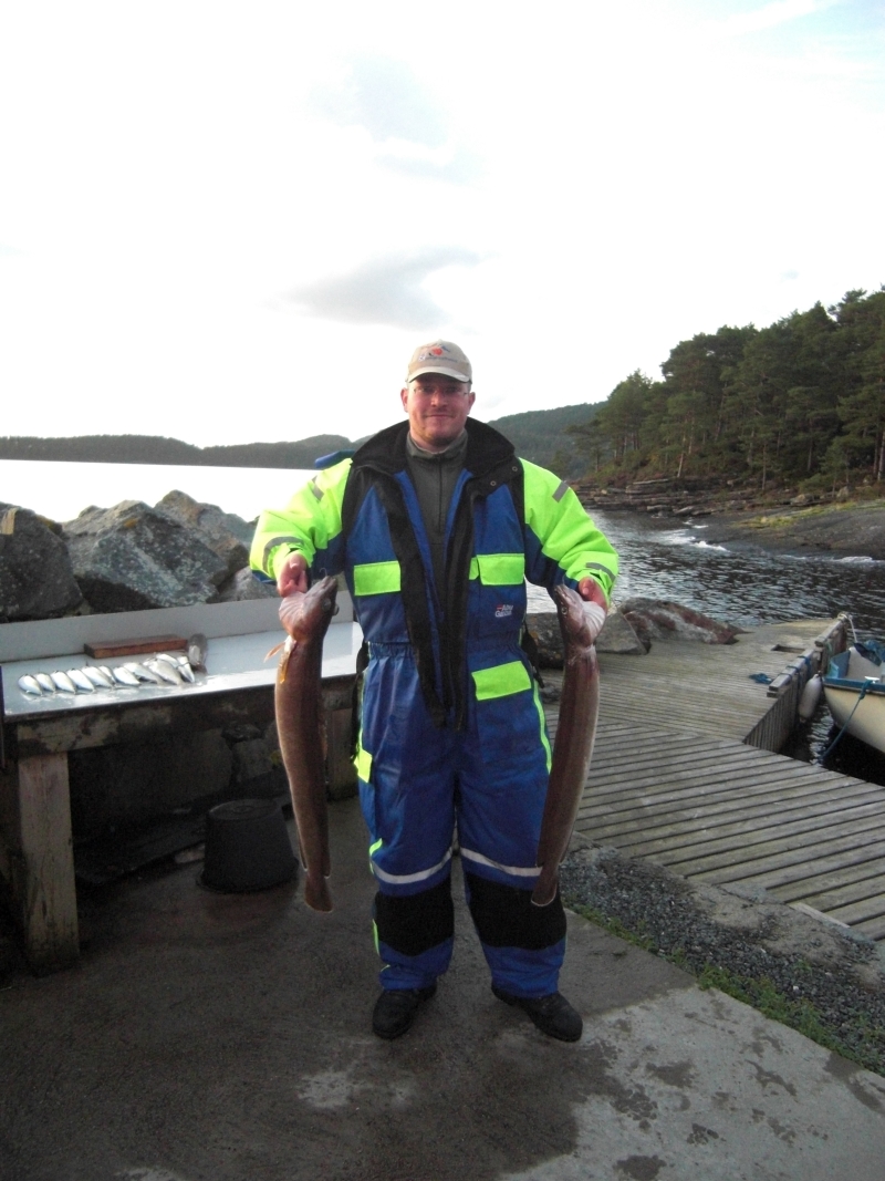 dann versuch mal die Kante zum Skanevikfjord hin. Es geht dort gleich steil abwärts. Wenn Du knapp über Grund mit Makrele angelst, könntest Du Leng bekommen