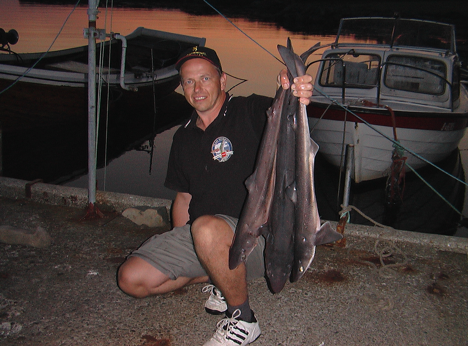 Ja so langsam kommt hier Aufbruchsstimmung auf und gestern Abend war ich das letzte mal draußen.Habe die Makrelen organisiert (wie bestellt) und etwas Beifang gab es auch noch.Dornhai an der Makrelenmontage in 15 Meter Tiefe.Die gingen ab wie eine Rakete.Die durften dann auch mit nachdem wir hier ganz nützliche Tips für die Verarbeitung bekommen haben.