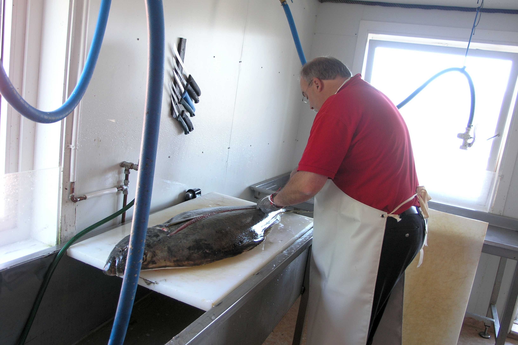 Der Heilbutt, denn ich filetiere, wurde übrigens direkt am Leuchtfeuer vor der Spitze der Insel Hals gefangen, allerdings nicht von mir, sondern auf Langleine.