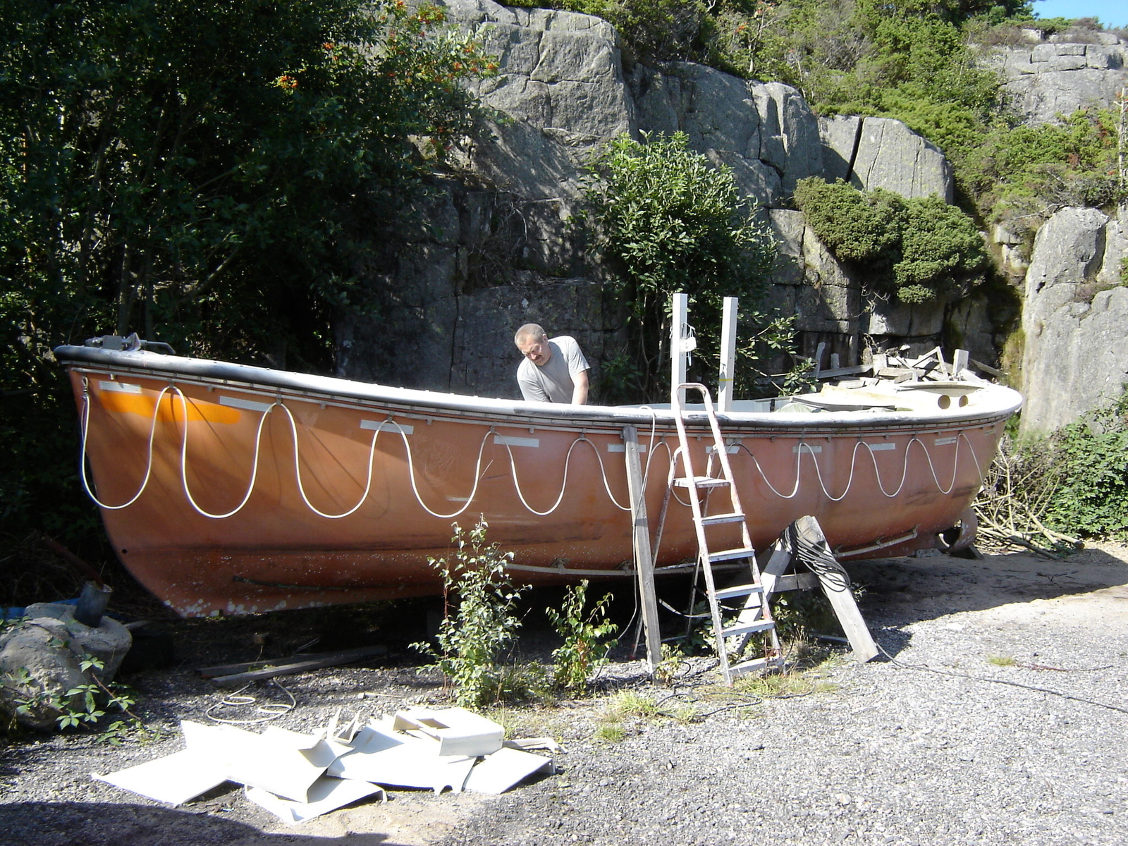 Nein es ist ein Umbau von Rettungsboot auf Angel-Boot,ich hänge mal ein paar Bilder an da kannst Du sehen wie es von innen aussah.Ich habe nur noch die Elektrik und die Steuerkonsole zu machen und den zweiten Anstich.