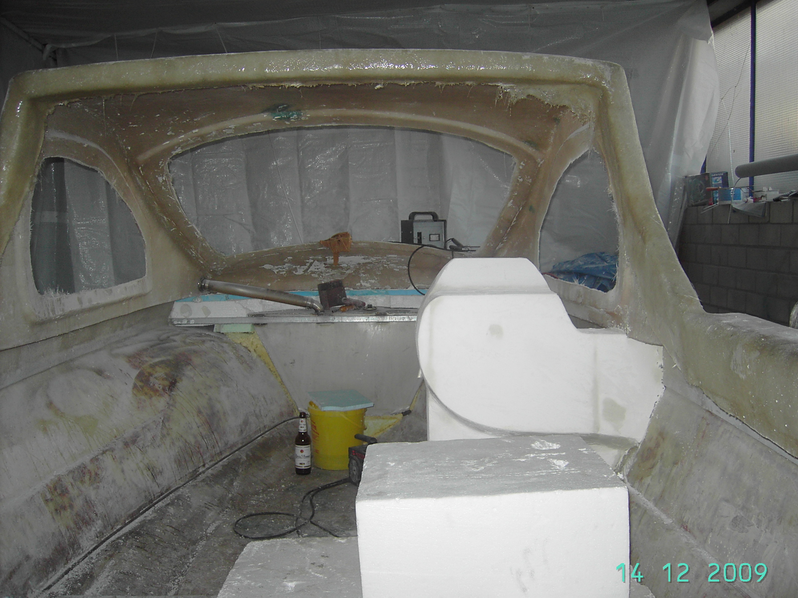 der Tank Edelstahl ist drin die Konsohle fürs Ruder ist schon sichtbar, der