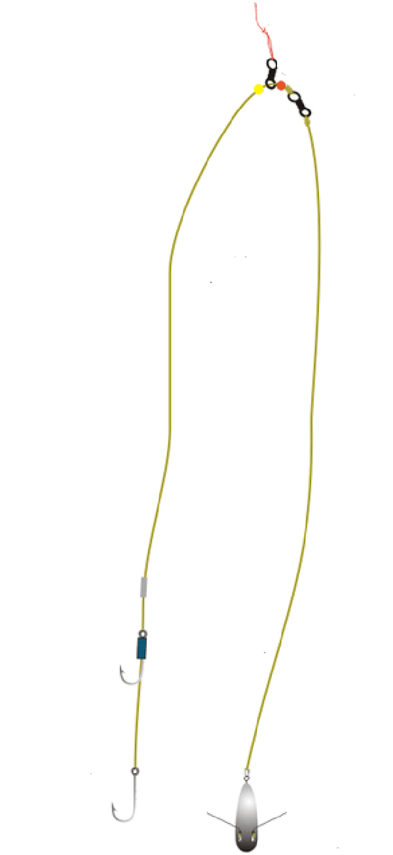 Ich habe eins gefunden. Ich nutze meist die variante mit nur 1 großer haken. Schnur: Vom wirbel bis blei 0,70-0,80mm, schnur bis zum haken 0,50-0,70mm.