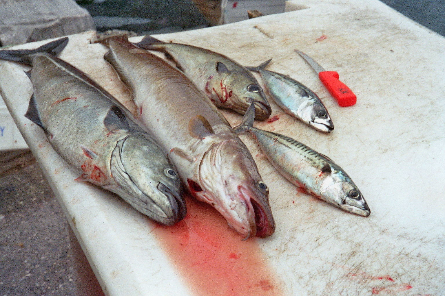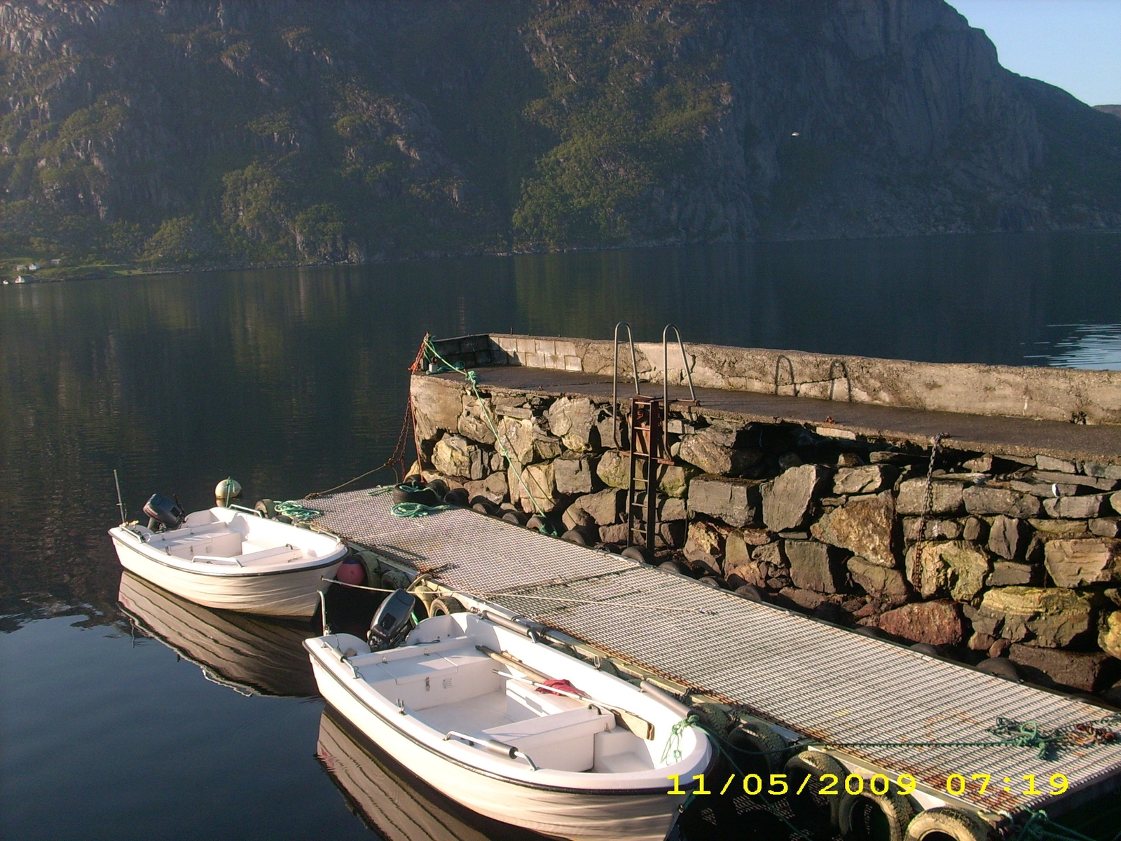 Eigentlich musst du nicht unbedingt so wirklich weit fahren. Auf der anderen Seite gegenüber dem Haus vor der Felswand bis zu dem weißen Haus haben wir uns driften lassen und zeitweise ein paar schöne Pollacks gefangen. Ein schöner Schellfisch und Minirotbarsche waren auch dabei. Das fängt so bei ca. 40m Tiefe an, nimmt aber beim wegdriften von der Wand auch schnell zu. Wie schon erwähnt angeln wir gerne mit leichter Ausrüstung. Kleine Köhler waren fast überall vertreten, die waren schon fast lästig und durften natürlich wieder schwimmen. Wenn du vom Steg nach rechts schaust, siehst du die Insel Maroya, dort befindet sich eine Lachsfarm. Vor der Farm (200m Abstand berücksichtigen) soll es gut möglich sein große Köhler zu fangen, ist natürlich abhängig von der Jahreszeit, haben wir aber auch nicht versucht. Du kannst es eigentlich um die gesamte Insel herum probieren. Wenn du links um die Insel fährst gibt es eine Untiefe, aber Vorsicht bei aufkommenden Wind. Dort ist es dann besonders heftig mit den Wellen. Bevor du um die Insel fährst kannst du es auch noch mal links an der Insel probieren. Dort haben wir Dorsch, Leng in Küchengröße, Schellfisch und 2 Flügelbutt gefangen. Ebenso geht es auch rechts von der Farm in der Bucht, wenn man günstig driftet. Gute Chancen auf Dorsch und Pollack hat man rechts neben dem Hornellen an der Fahrrinne und rechts in Höhe des Parkplatzes. Das setzt natürlich gutes Wetter voraus, sonst kann der Rückweg schon lang und unangenehm werden. Wenn du Glück hast gibt es nette Nachbarn im Haus 95/2 die sich gut auskennen und bereit sind, dich mit Informationen zu versorgen.