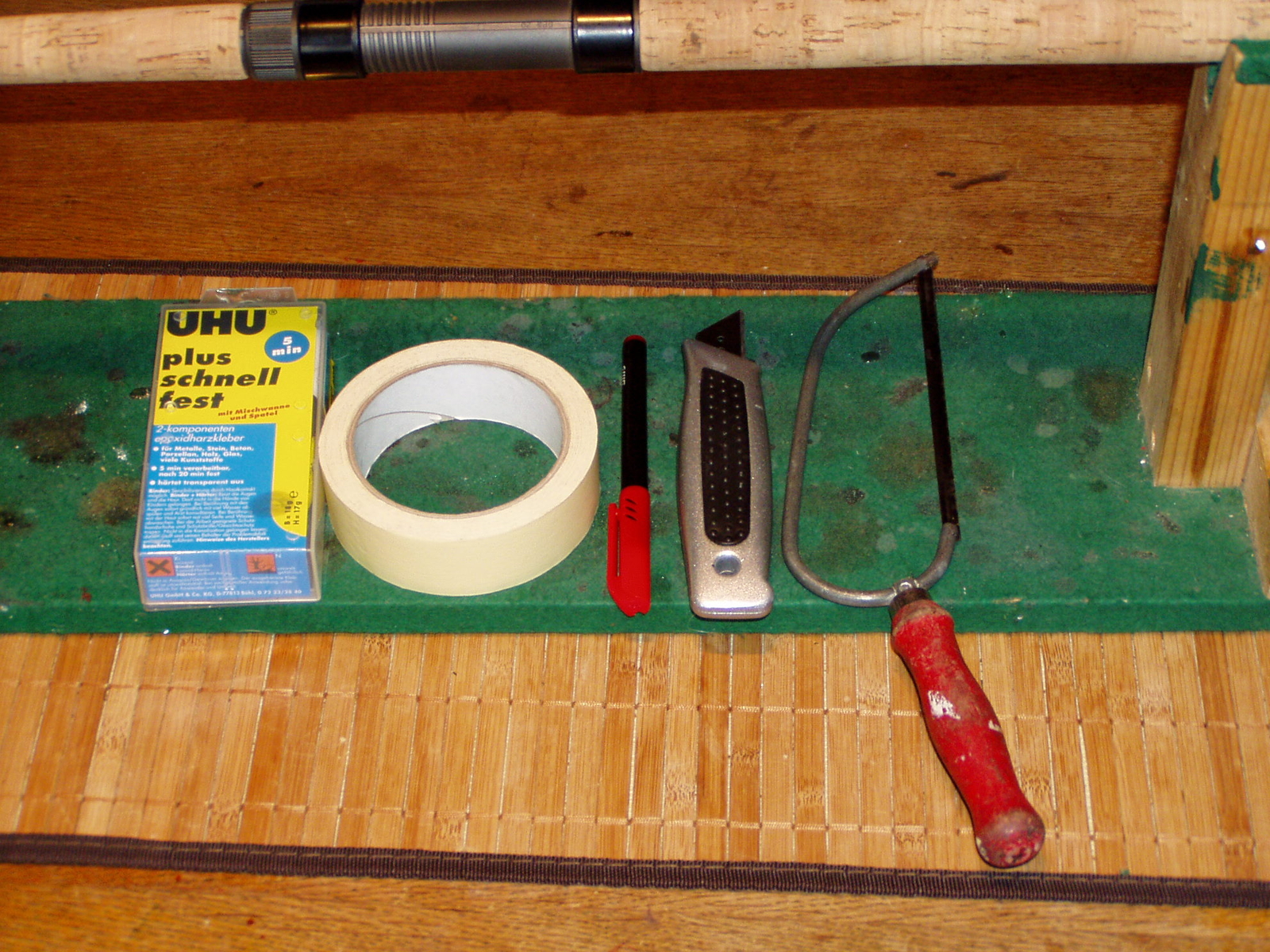 Dazu braucht man ein Alurohr 15mm Durchmesser 30 cm lang, Pattex und