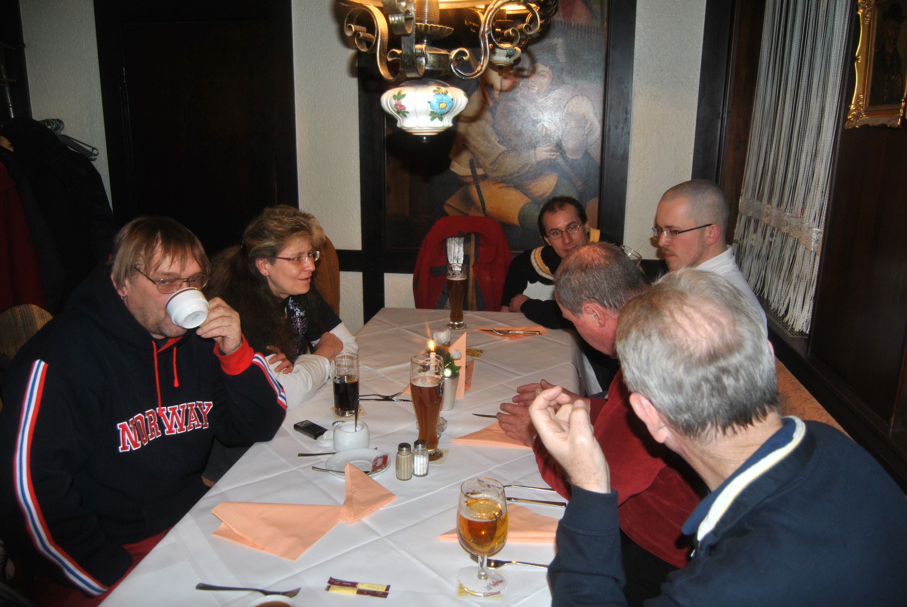 Dass Daggi und Jürgen keinen Knoblauch mögen, ist natürlich Pech, aber es war auf jedenfall deutlich besser, als in einen rauchverhangenem Raum etwas zu essen. Wir hätten in dem Raum zwar rauchen dürfen, aber da es unter den Gästen nur tolerante Raucher gab, wurde halt vor der Tür der Rauch verbreitet.