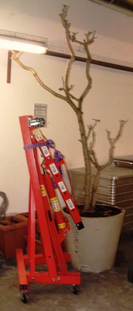 Mein Trompetenbäumchen auf der Arbeit ist gestern ins Winterlager gekommen,vorher noch zurückgeschnitten und das wichtigste, das Bäumchen:D mal umgetoppft, das geht allerdings nur noch mit nem Hebekran:eek: wie man sieht :happy:
