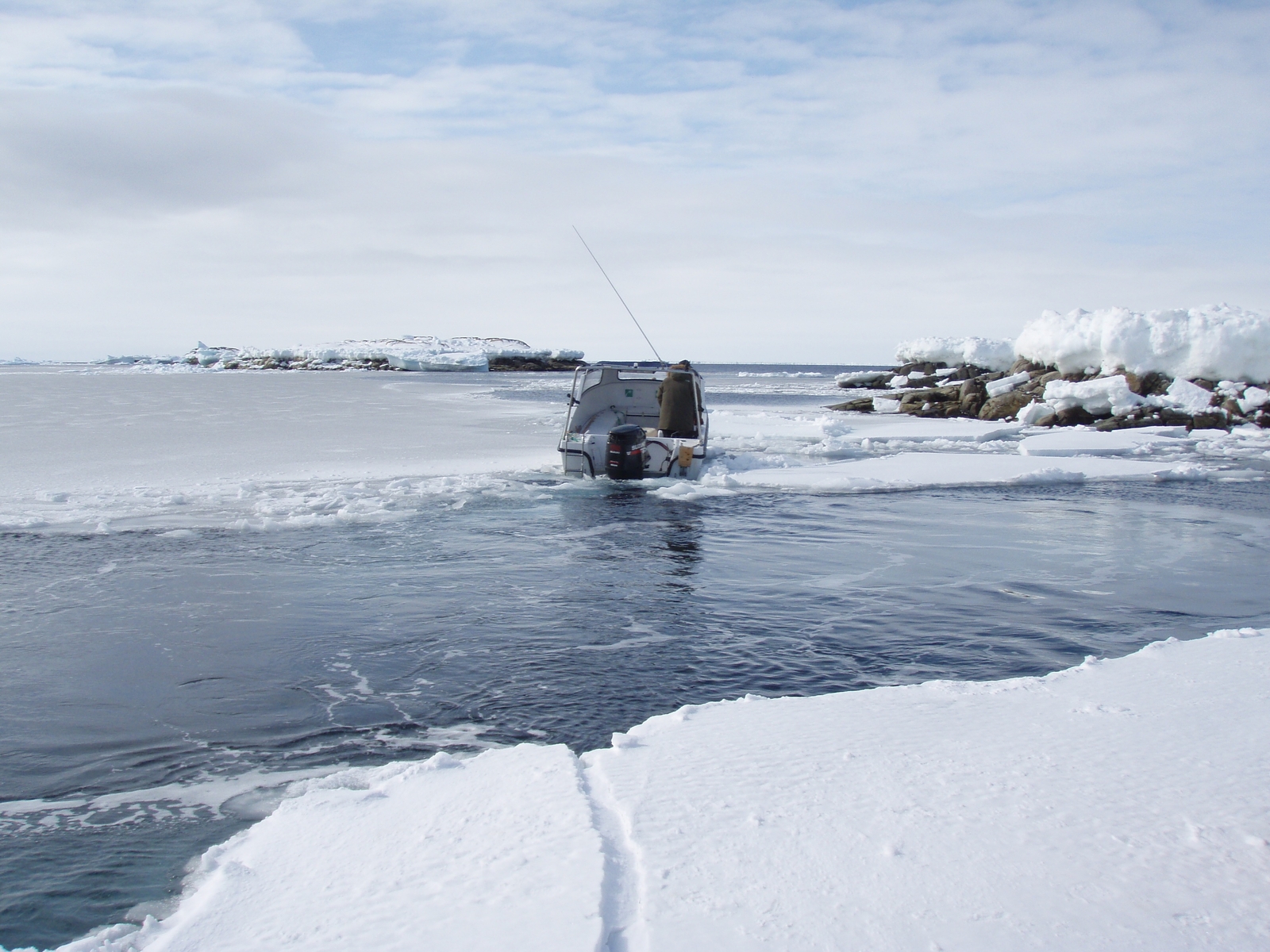 Es gibt auch AB- motorisierte Kunststoffboote, die selbst mit 10 cm starkem Meereis kein Problem haben.........