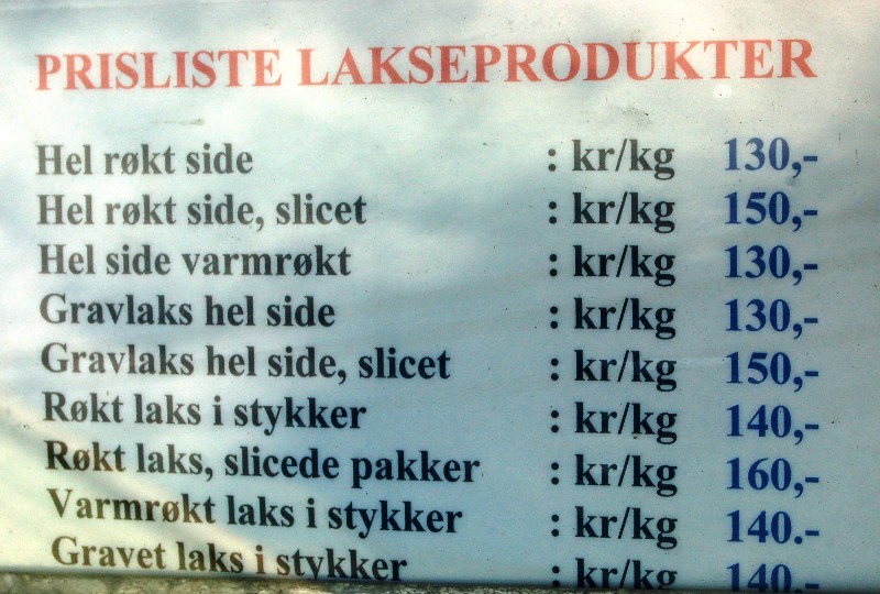 Fahr auch mal nach Agnefest. Da ist bei der Fischfabrik jetzt ein Verkaufsstand für Lachs und andere leckere Sachen. Preise sind eigentlich OK.