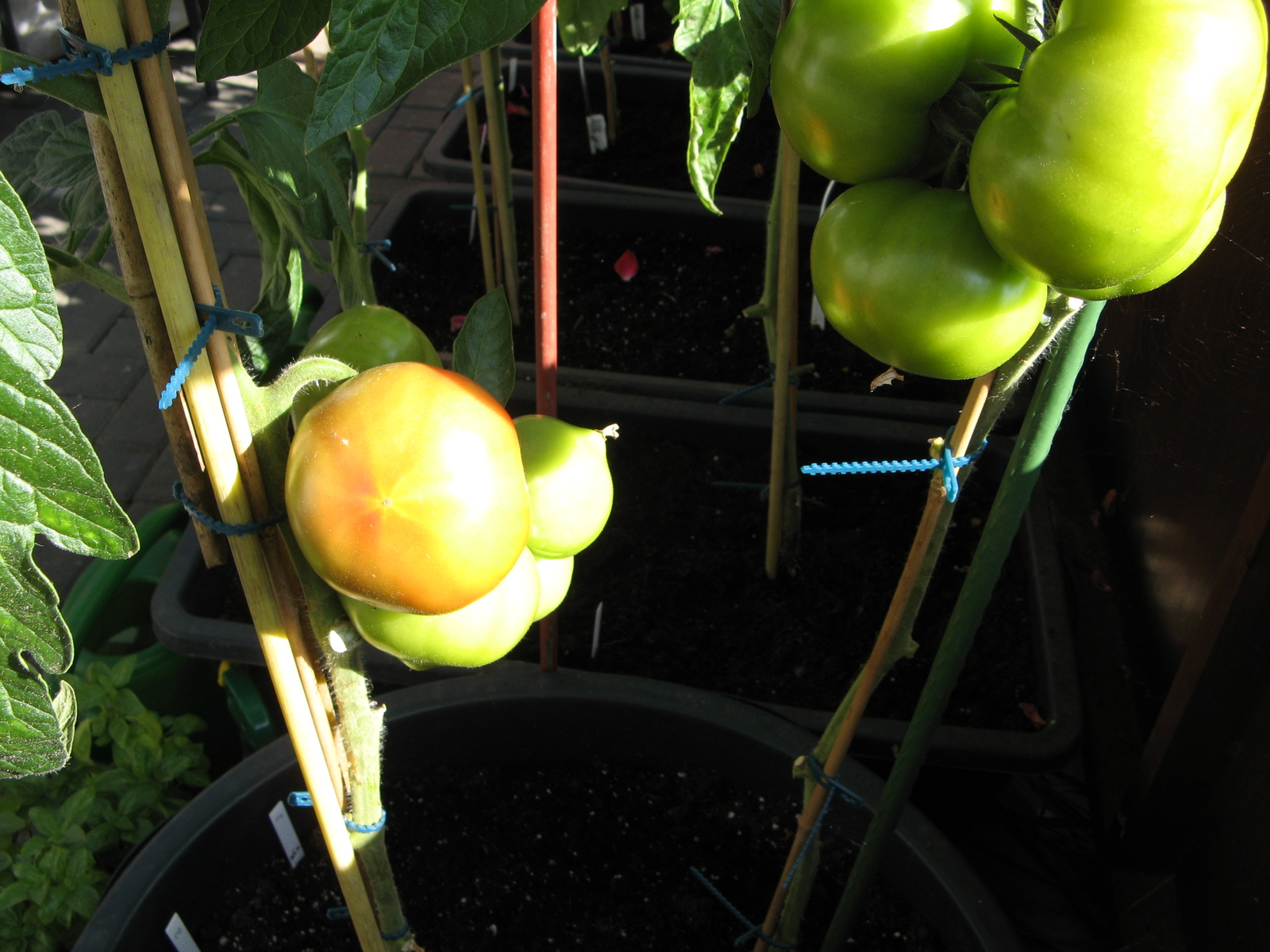 Ich habe gestern versucht meine Pflanzen etwas auszulichten und ein paar Blätter zu entfernen, damit die wenigen Tomaten etwas mehr Licht bekommen.