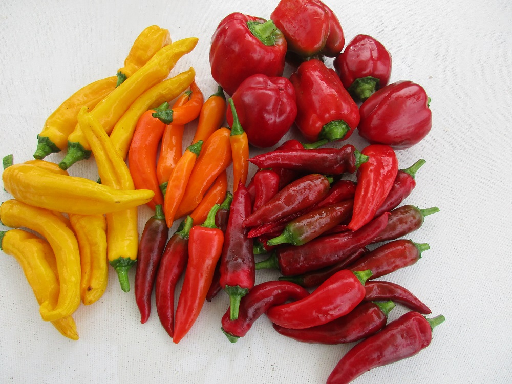 die chillies werden später gemahlen und die papis halbgetrocknet süß-sauer-scharf in öl eingelegt.