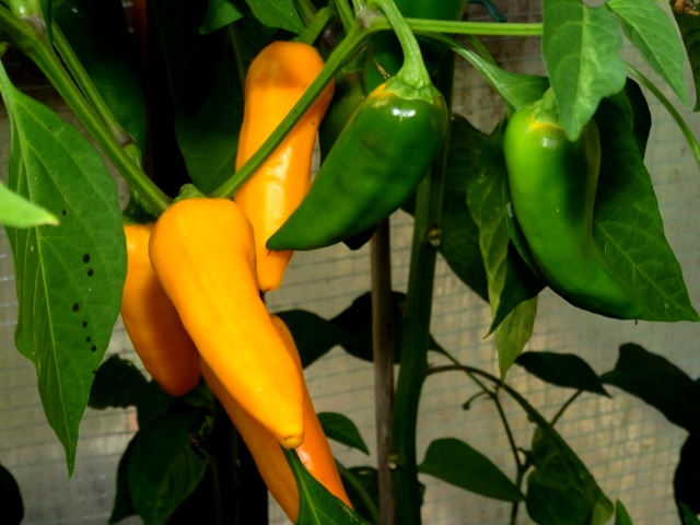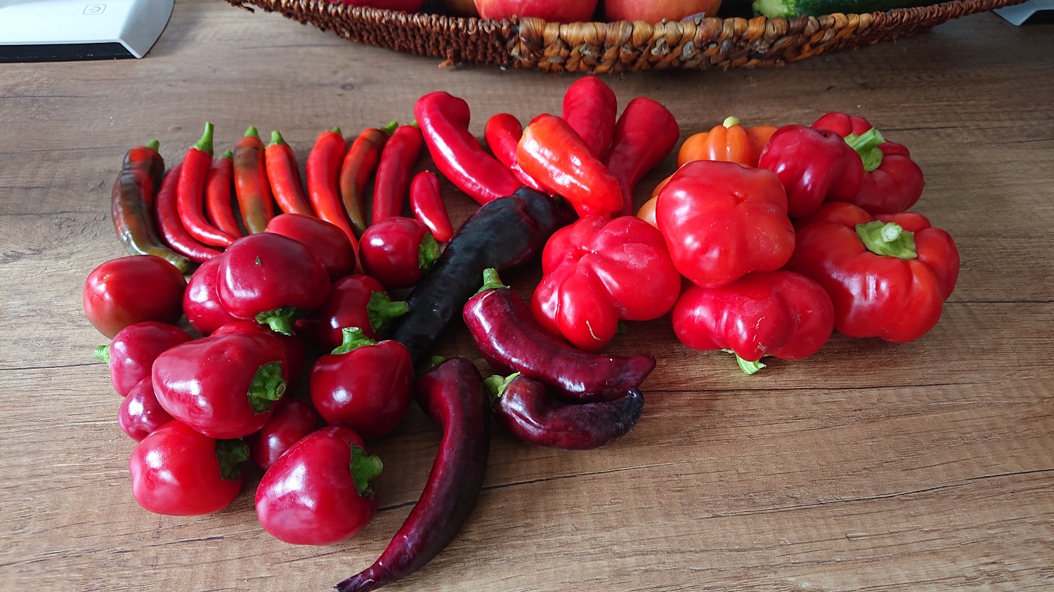 oben links Peperonis und lt. Hersteller auch die rechts daneben, ganz rechts Apfelpaprika.