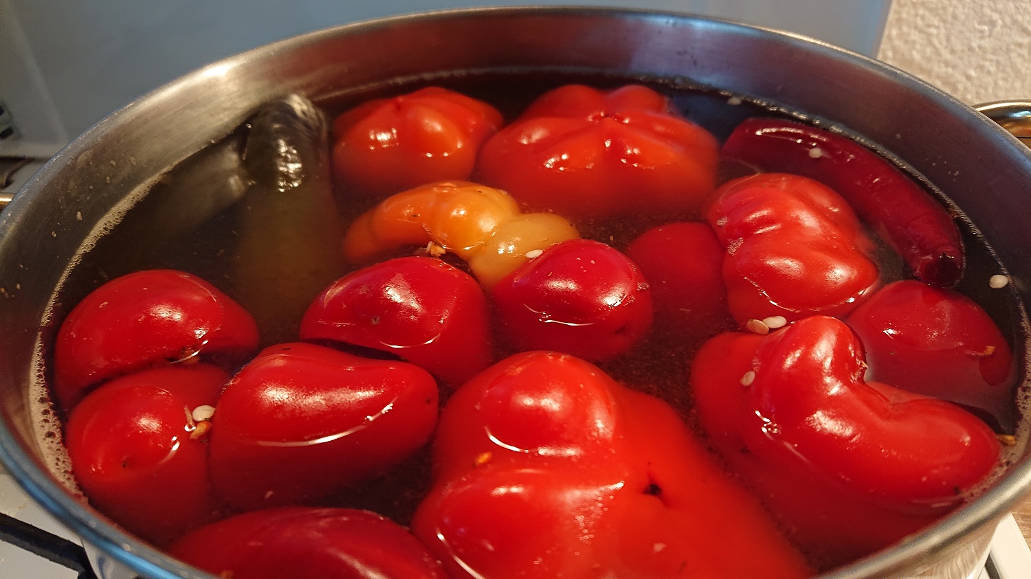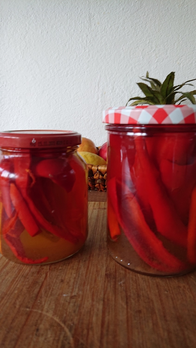 Kugel- und Apfelpaprika mit Frischkäse gefüllt und süß-sauer eingelegt