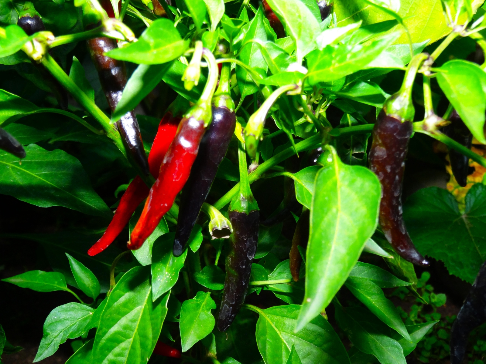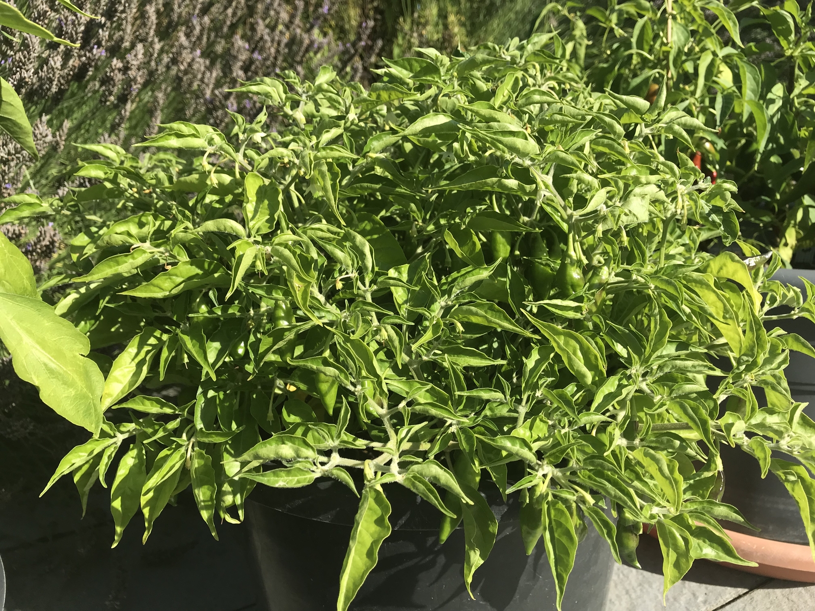 Im zweiten Bild scharfe Habaneros und Tabasco.Aber auch die Hochbeete haben dieses Jahr alles gegeben dank Bewässerungsschlauch.