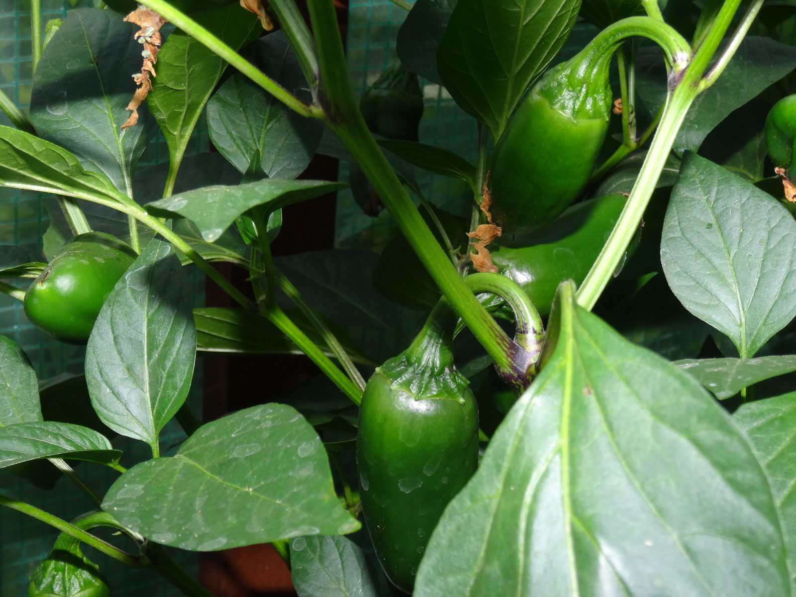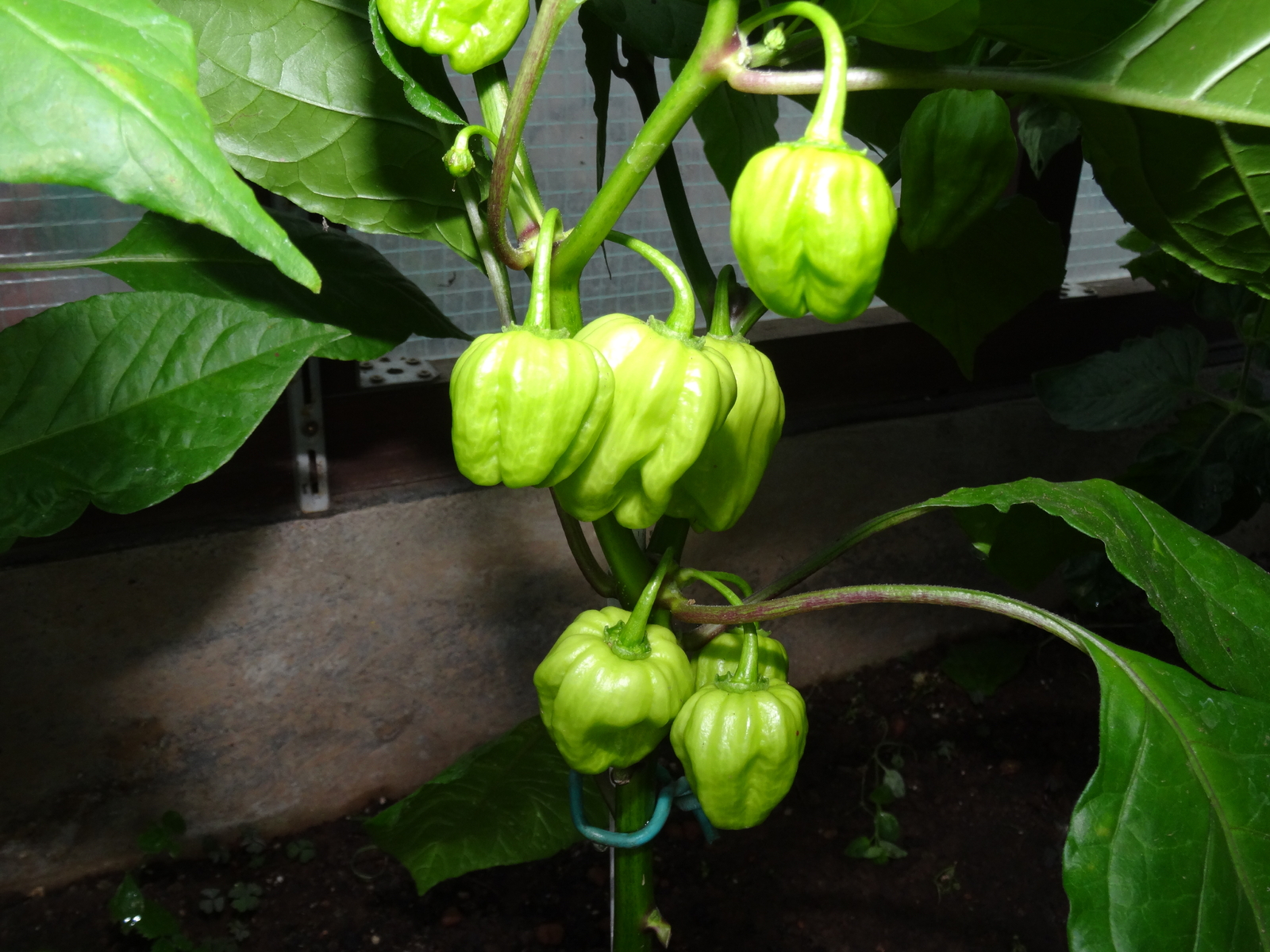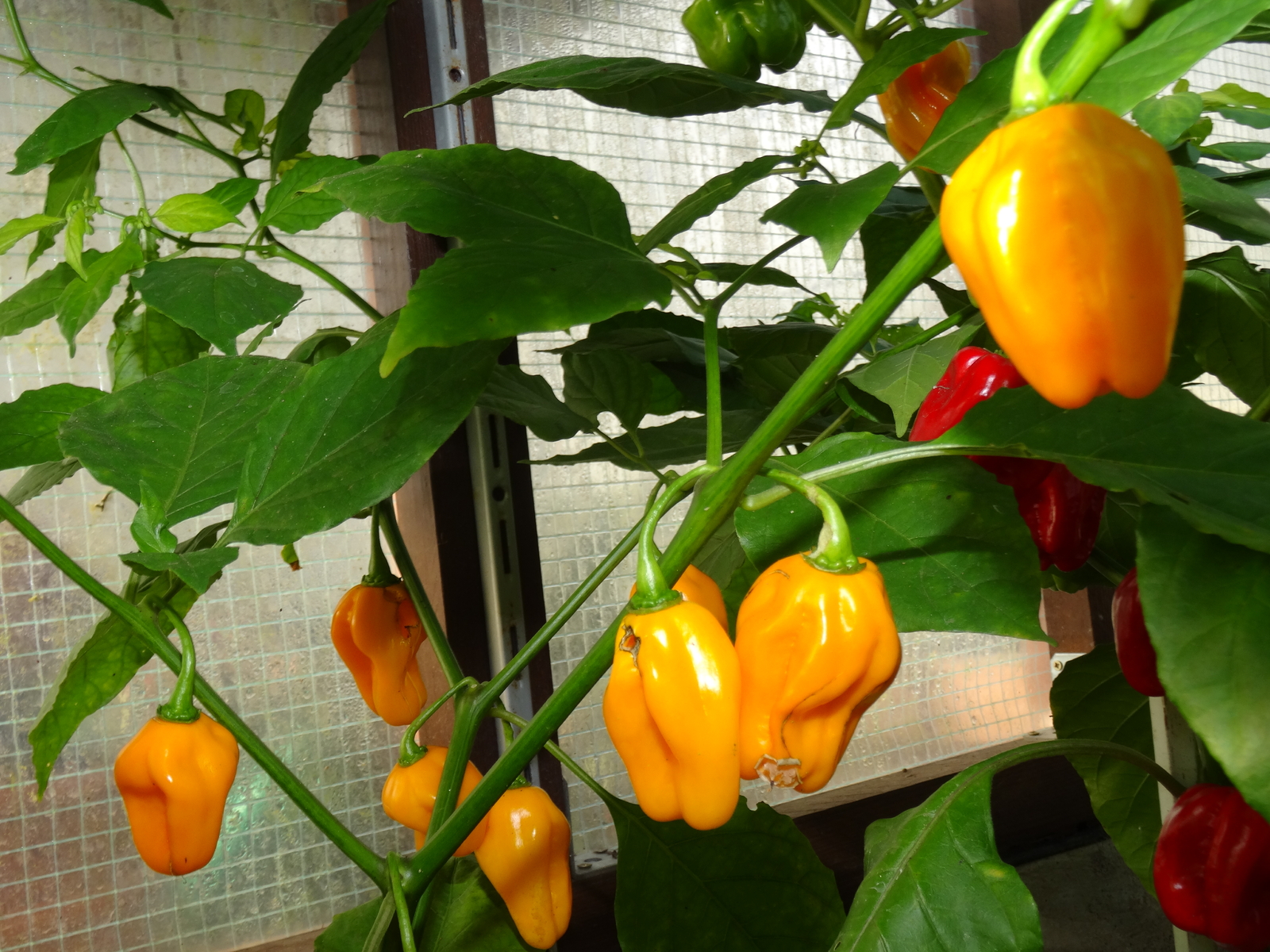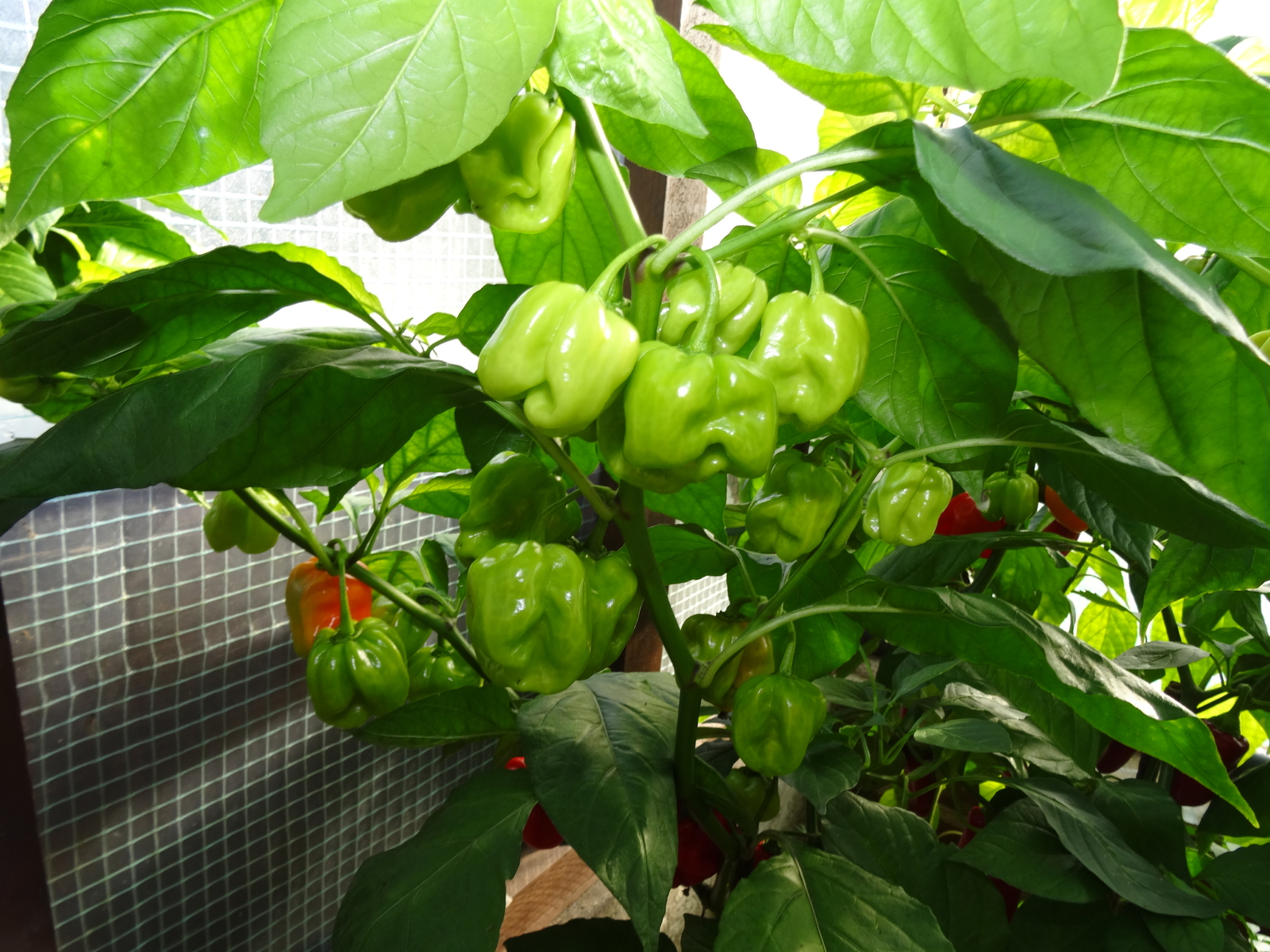 Nachdem es draußen nachts schon recht frisch ist, habe ich die Aji Mojero in Wohnzimmer umgezogen, Cayenne und Jalapeno stehen noch draußen dicht an der Hauswand. Schon erstaunlich, wie reichlich die Aji Mojero trägt. Im Topf sind 4 Pflanzen, die insgesamt aber nicht so hoch geworden sind, dennoch reichlich Früchte dran