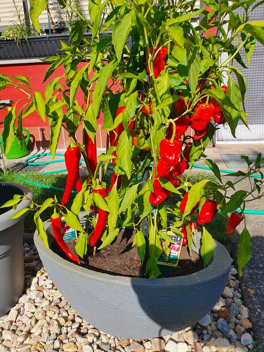 Wir haben dieses Jahr eine Superernte. Haben aber nur auf vorgezogene Chiliepflanzen aus dem Baumarkt zurückgegriffen.