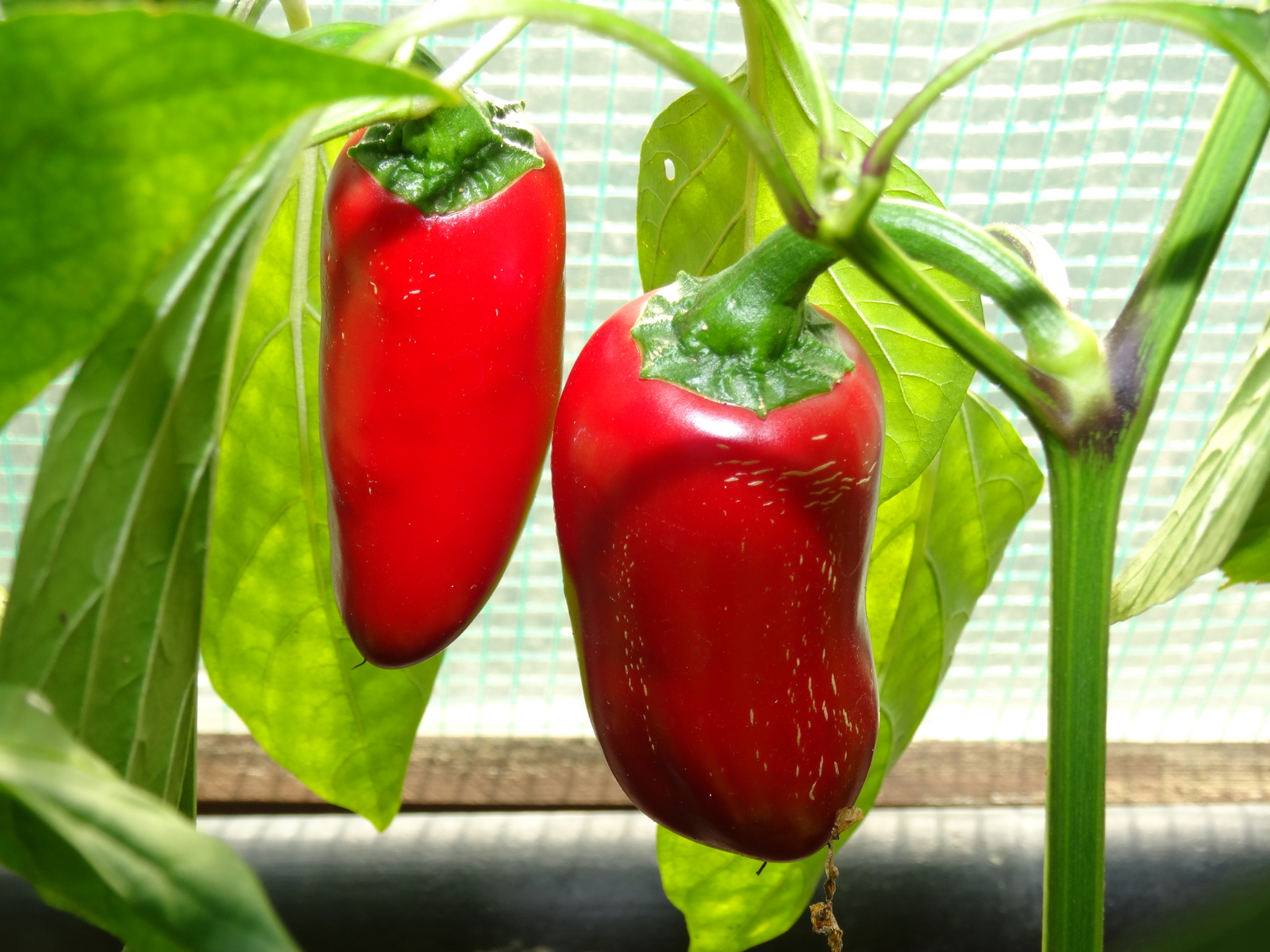 Im ersten Bild links nichtscharfe Türkische Peperoni und rechts geringscharfe Tapas-Chilie.