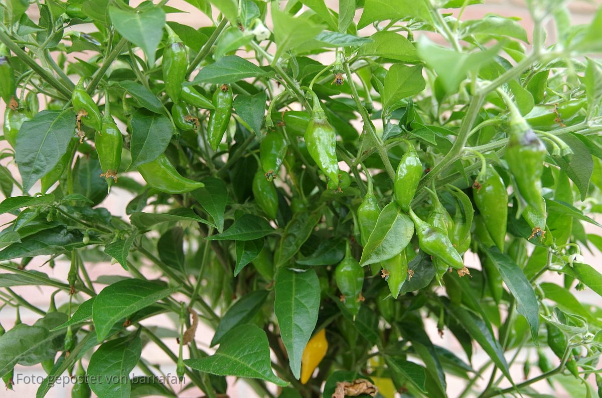 Erst kleine, ganz kleine Ernte. Macht nichts, werde die dennoch trocknen, dörren und zu Chiliflocken verarbeiten