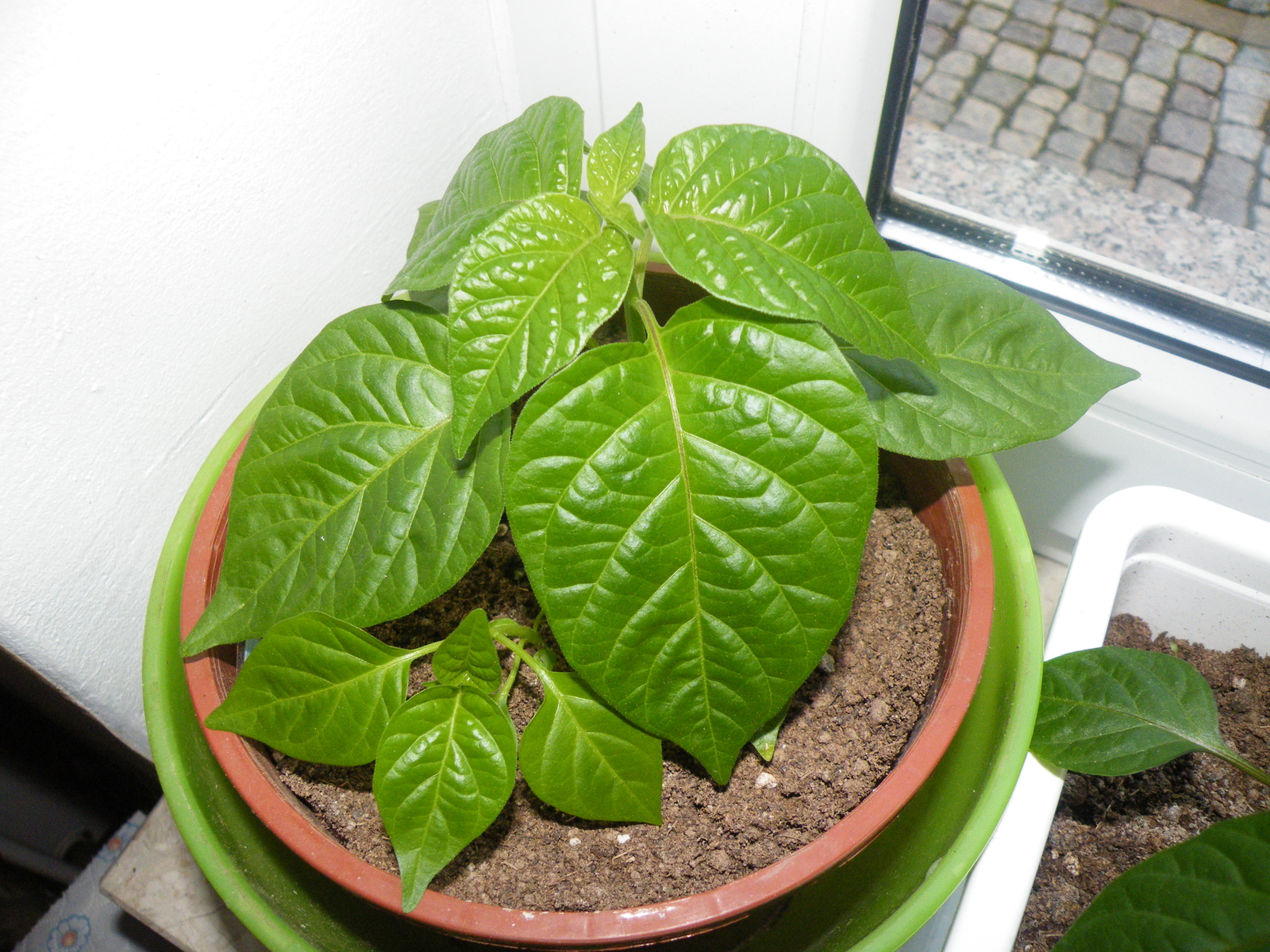 Die Pflanzen haben zum Teil einen enormen Schub von bis zu 10cm in 3 Tagen gemacht und beginnen zu blühen.Allerdings wie man auf dem 3.Foto sieht sind die Unterschiede enorm,während B.Rainbow und Peperoni Höhen von über 30cm erreicht haben ,hängen die Jolokia mit 7-10cm weit hinterher,obwohl alle gleich alt sind.Weiteres "Sorgenkind" ist wie im vergangenen Jahr die Habanero (4.Bild) die zwar riesige Blätter hat aber kaum in die Höhe wächst.Werde gleich zum 2.mal düngen und dann in ein paar Tagen wieder Bilder einstellen.