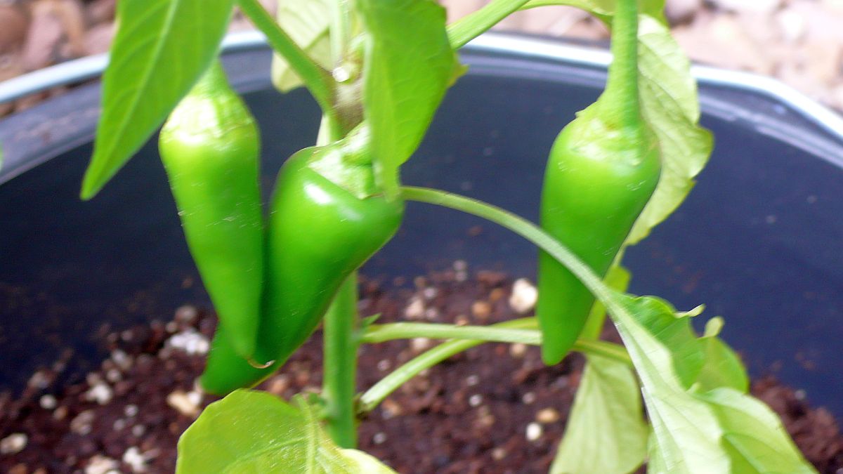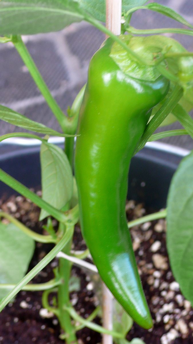 Die fish pepper tragen reichlich und diese hier läßt durch Wassermangel nur kurzfristig die Flügel hängen.
