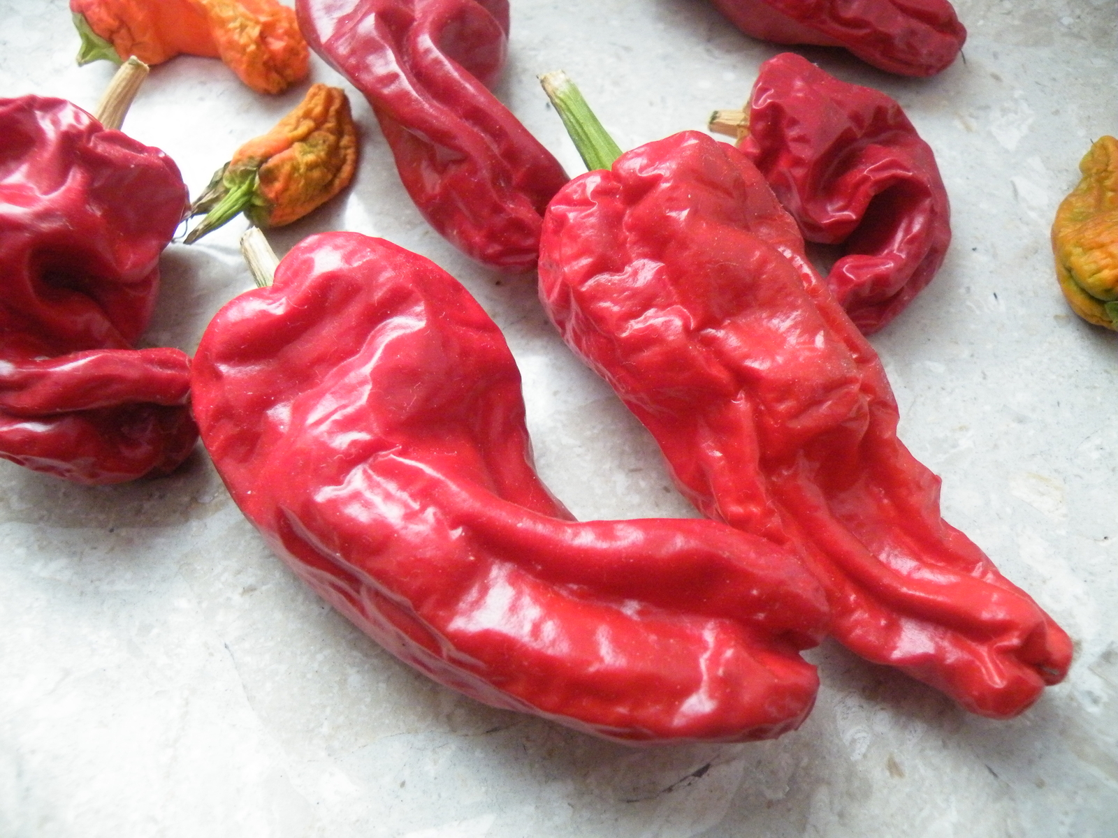 Eine andere Frage beschäftigt mich derweil, und zwar wann und wie Chilies geerntet werden?: a) wenn sie rot gefärbt sind und noch nicht anfangen zu schrumpeln? oder b) wenn der Schrumpelprozess bereits angefangen hat?