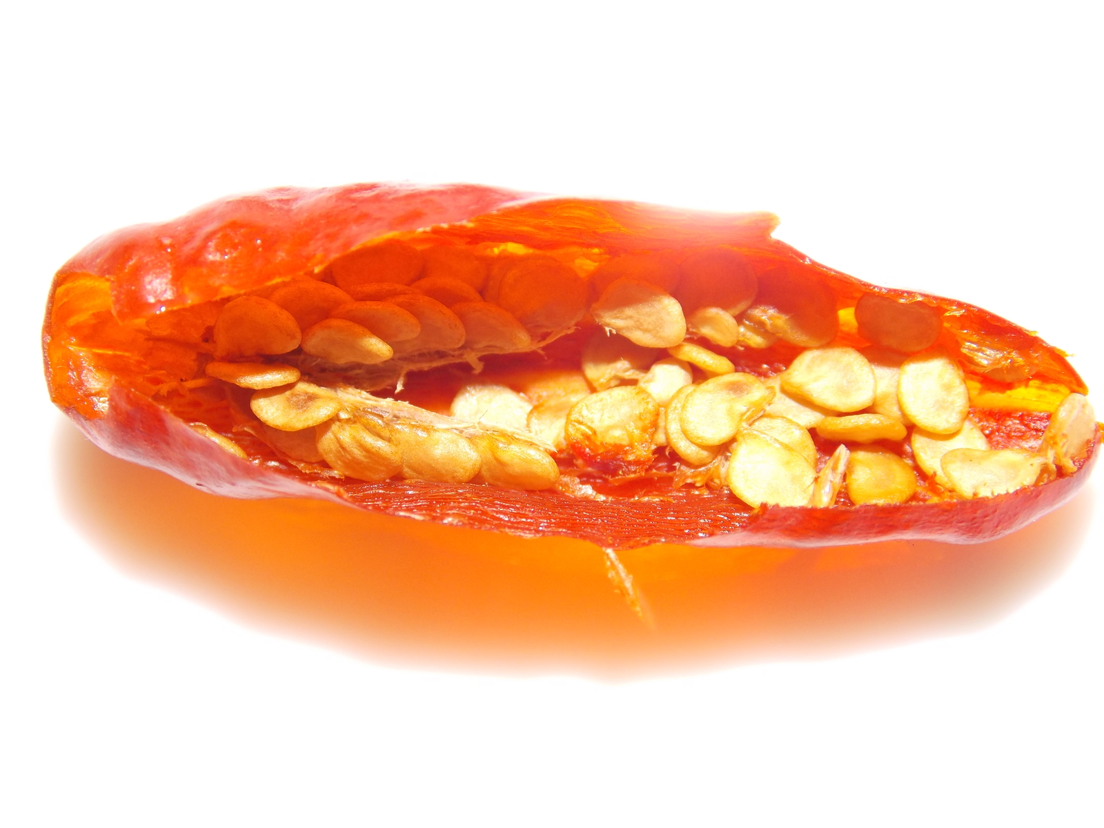 Die Kerne sind bräunlich verfärbt ,es riecht unangenehm säuerlich (durch Gährung) und die Schoten sind im Gegensatz zu den anderen sehr weich.