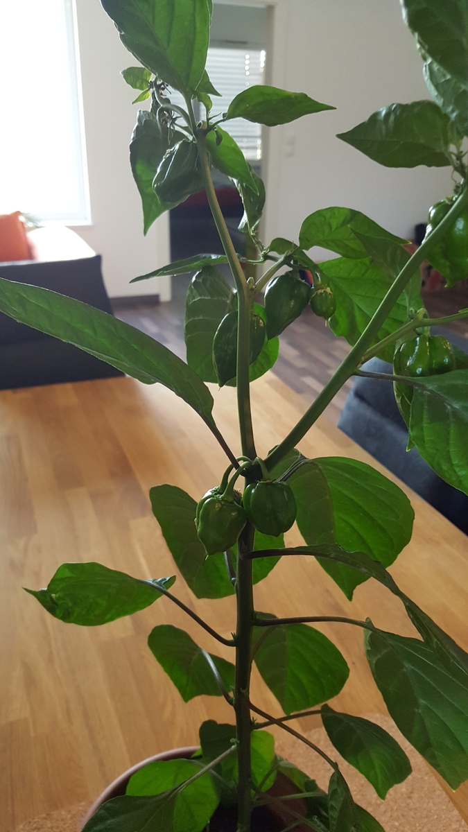 Zu Hause sind die ersten Habaneros bereit zum abreifen.