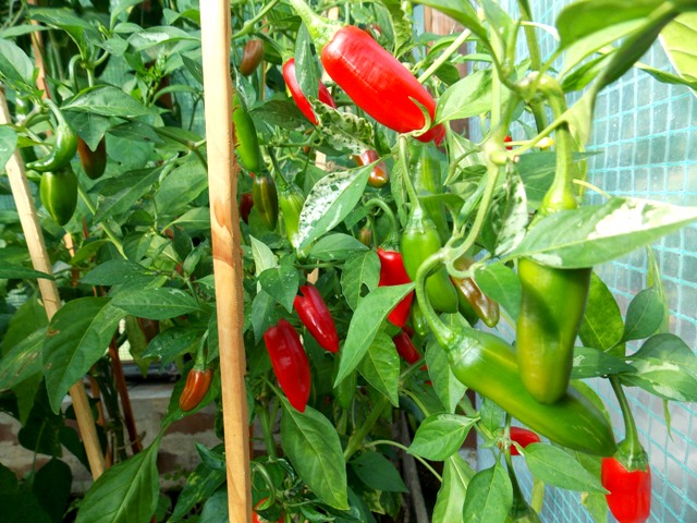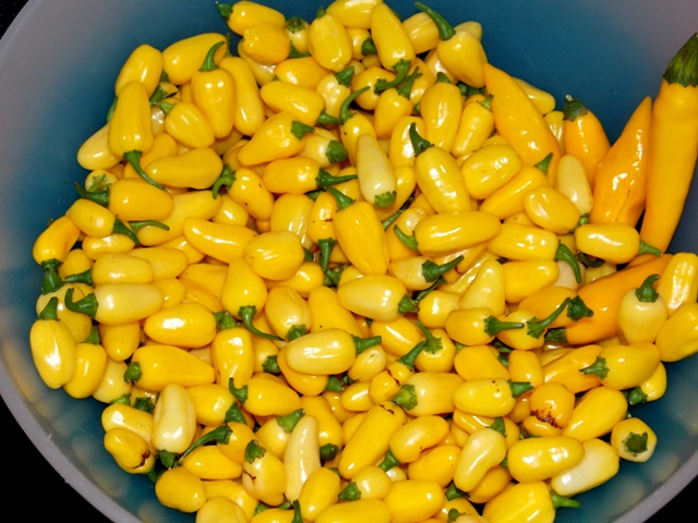 die chillies werden später gemahlen und die papis halbgetrocknet süß-sauer-scharf in öl eingelegt.