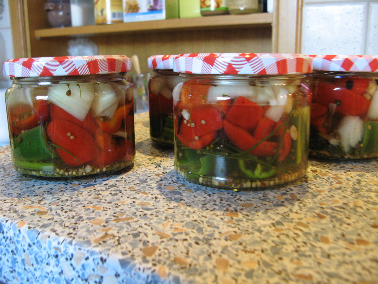 Gläser füllen und dann den heißen Sud auffüllen,Gläser zuschrauben und 10min. zukochen,fertig.Wahlweise kann man noch Knoblauch und Honig verwenden.
