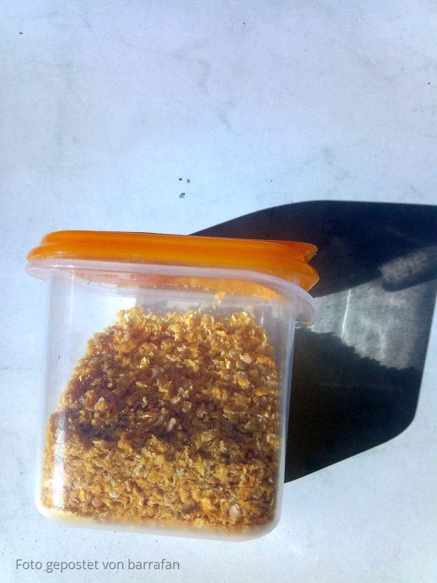 Nach dem Dörrvorgang bleibt nicht mehr viel übrig, doch nach dem Zerkleinern zu Flocken bleibt genug übrig.