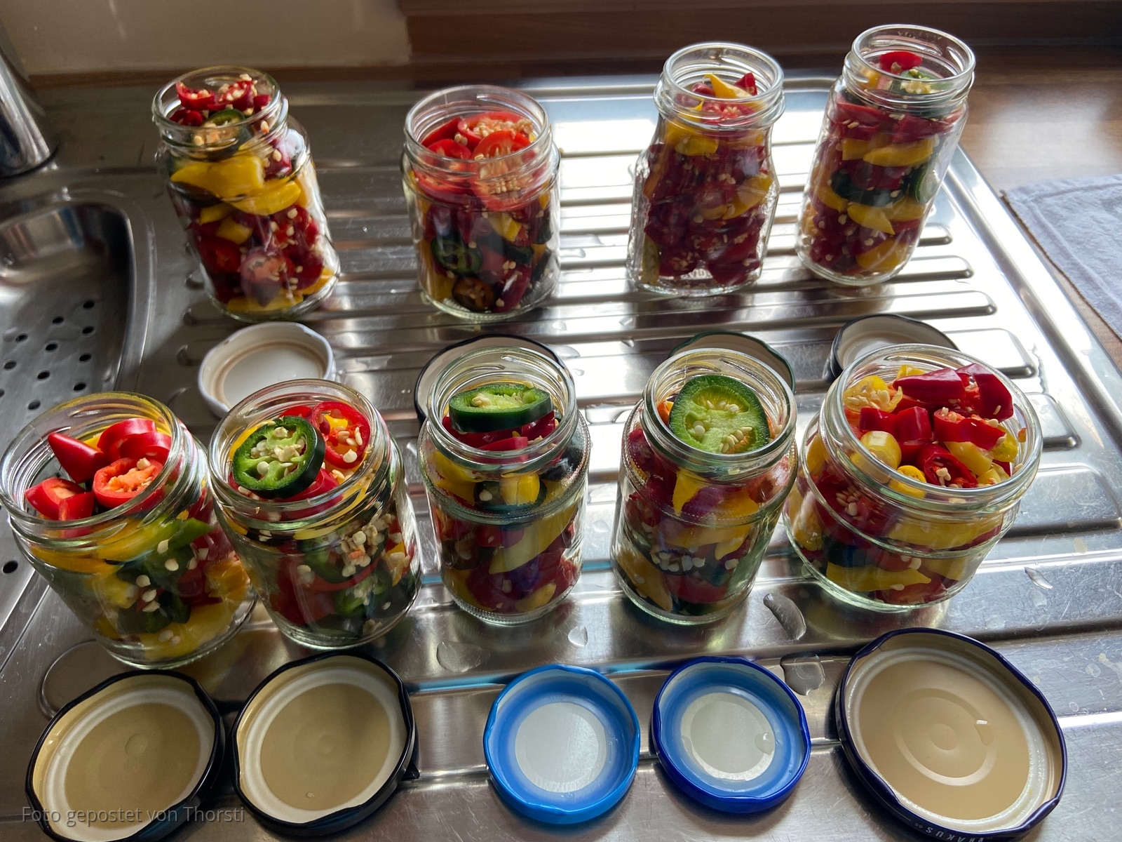 Die eingemachten Chili vom letzten Jahr „mussten“ wir teilweise verschenken. Da sie wohl recht lecker waren, durften wir an die Verwandtschaft nachliefern
