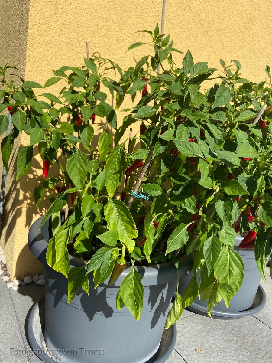 Erfahrungsgemäß bilden Pflanzen die eher trockener gehalten werden und viel Sonne hatten mehr und schärfere Schoten ,der Nachteil ist dann das man ständig ein Auge drauf haben muß weil man dann weniger aber viel öfter gießen muß.
