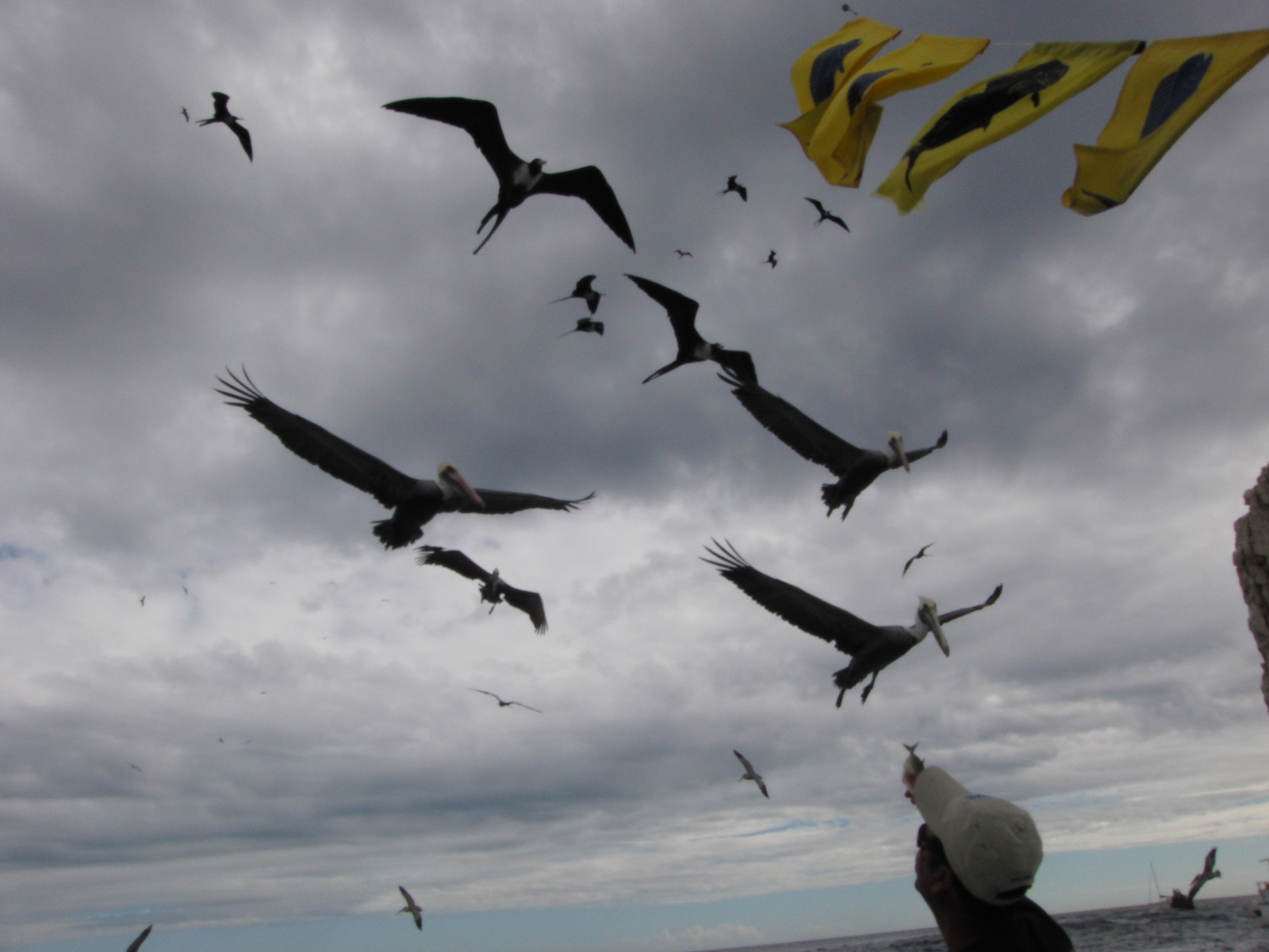 Morgens bei der Ausfahrt kann man sich kaum vorstellen was los ist, eine irre Menge an Angelbooten fährt raus, an dem bekannten Arch vor dem Hafen, an dem Fragattvögel und Pelikane kreisen.