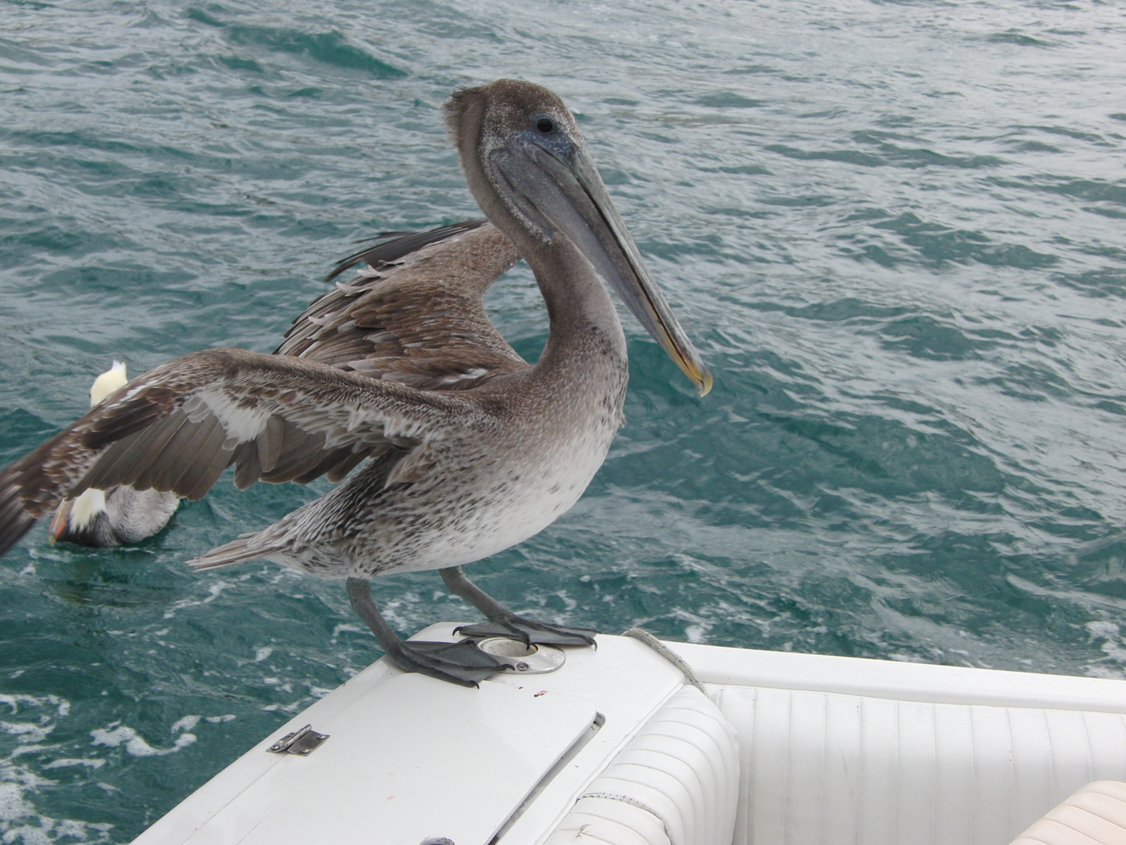 Was stark ist, wenn man in den Hafen fährt, fliegen Pelikane an, die sich die übrig gebliebenen Köderfische holen wollen. Tja, und auch bekommen, wobei es schon so eine Sache ist, einen Fisch in die Luft zu halten, das ihn ein Vogel holt, deren Schnabel ist mächtig groß....