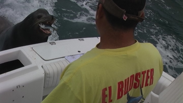 Im Hafen kommt der Skipper runter, und ruft Jose. Verduzte Blicke, er meint einen Seelöwen, der auch hinter dem Boot auftaucht. Ich gehe ganz nach hinten, und plötzlich macht der einen Satz, und Springt auf die hintere Plattform, um sich einen Fisch zu holen, den der Skipper auf die hintere Bordwand gelegt hat. Ich mache parallel einen Satz..... nach hinten, vor Schreck, zum allgemeinen Gelächter insbesondere des Skippers.