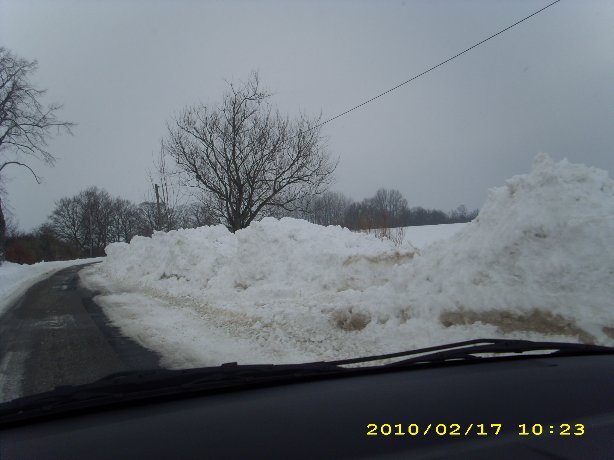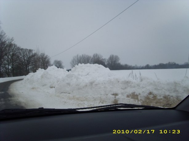 Wenn bei uns der Schneepflug durch ist muss ich manchmal hinterher mit dem Trecker ran und den Schneewall zur Strasse durchbrechen und ein paar Tonnen Schnee über die Leitplanken kippen, siehe Bild